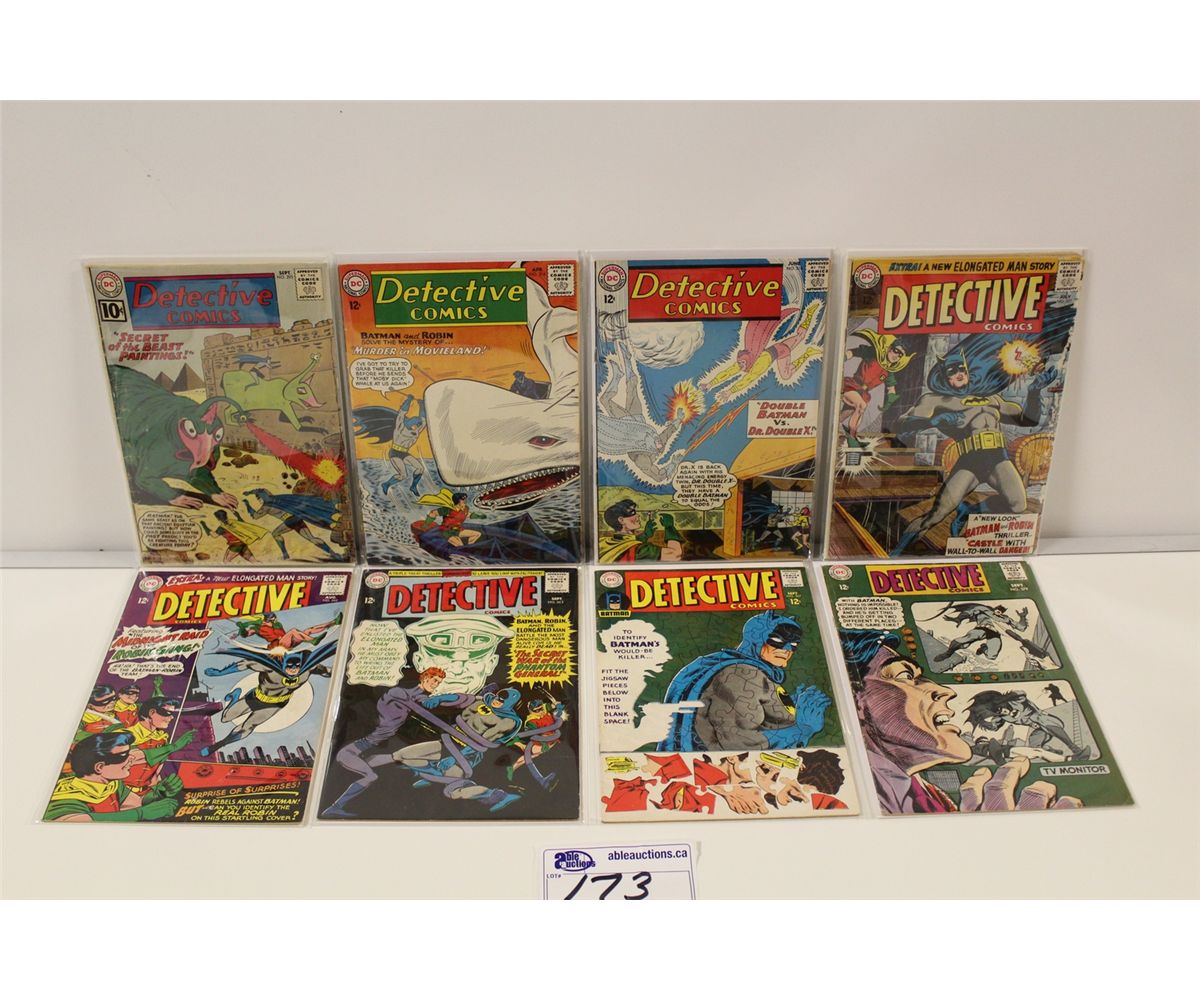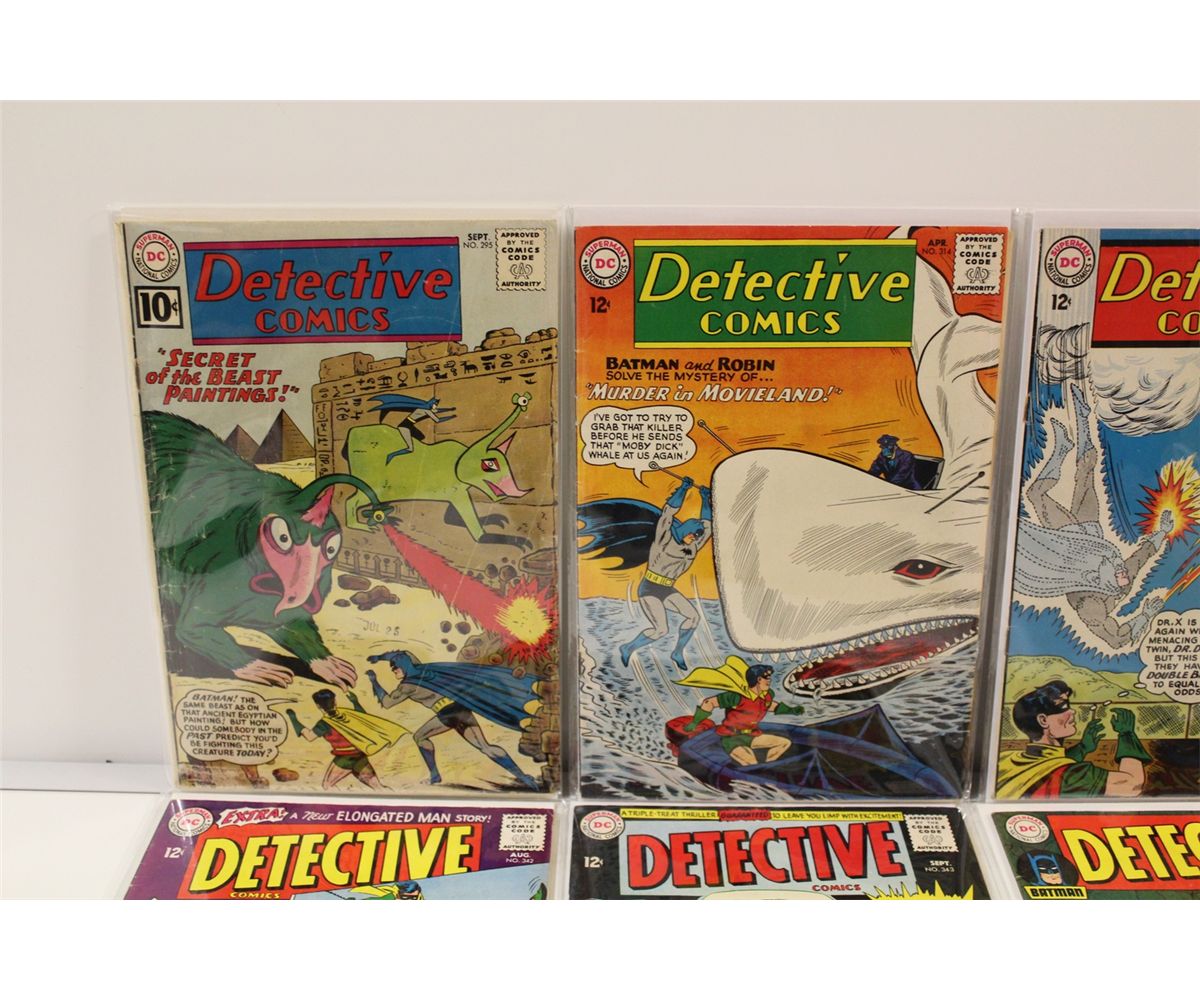 DETECTIVE COMICS #295-379 (1961-68) SILVER AGE RUN OF 8 12 CENT COVERS IN LOW-MID GRADE AVERAGE. INCLUDES #295, 314, 316, 329, 342, 343, 367 & 379