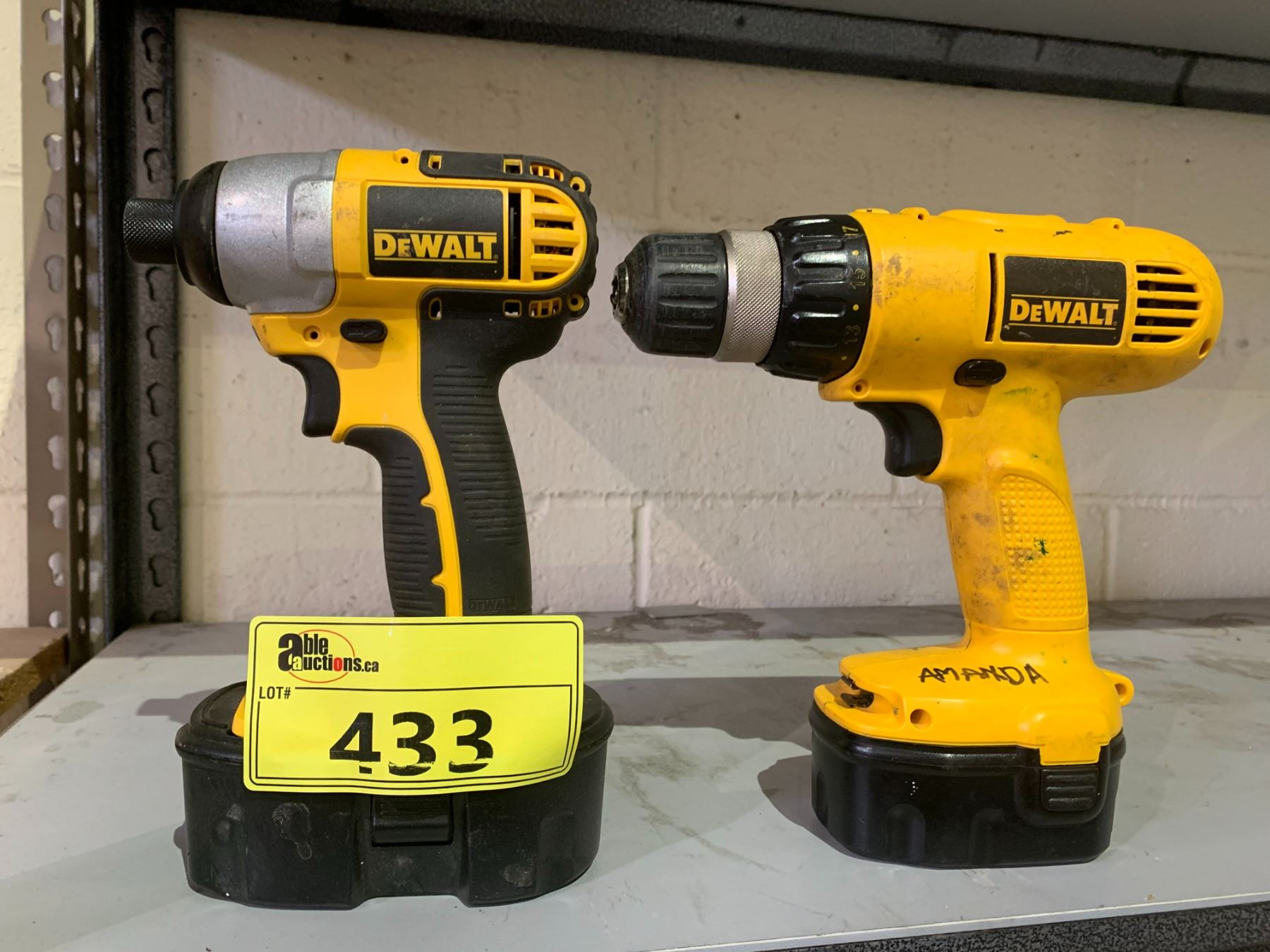 DEWALT 1/4" CORDLESS DRIVER WITH 18V BATTERY & DEWALT 3/8" CORDLESS DRILL/DRIVER WITH 14.4V BATTERY