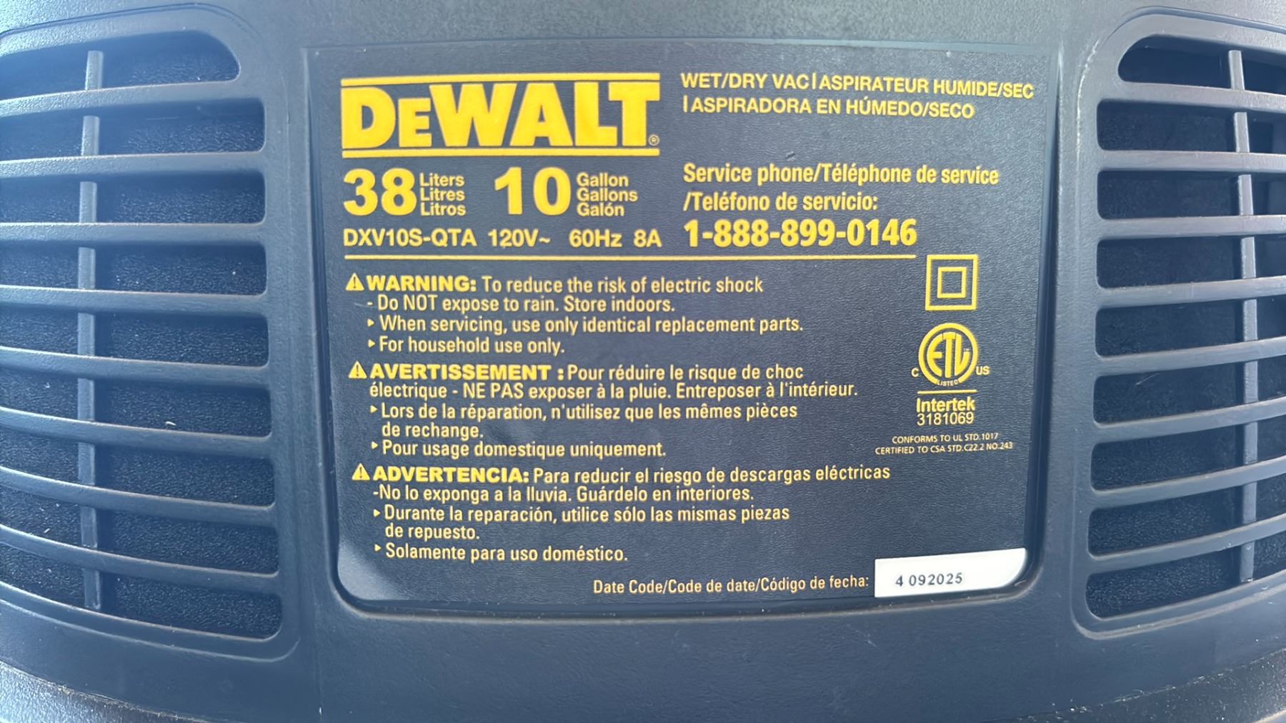 DEWALT 10 GAL WET/DRY VACUUM *NO HOSE/NO ATTACHMENTS/WORKING CONDITION UNKNOWN*
