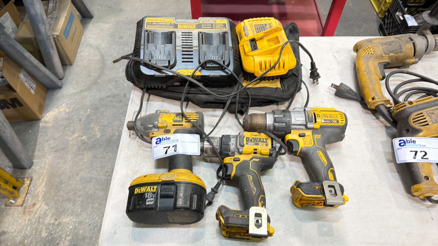 DEWALT BRUSHLESS DRILLS, WITH 2 BATTERY CHARGERS (NO BATTERIES FOR 2)