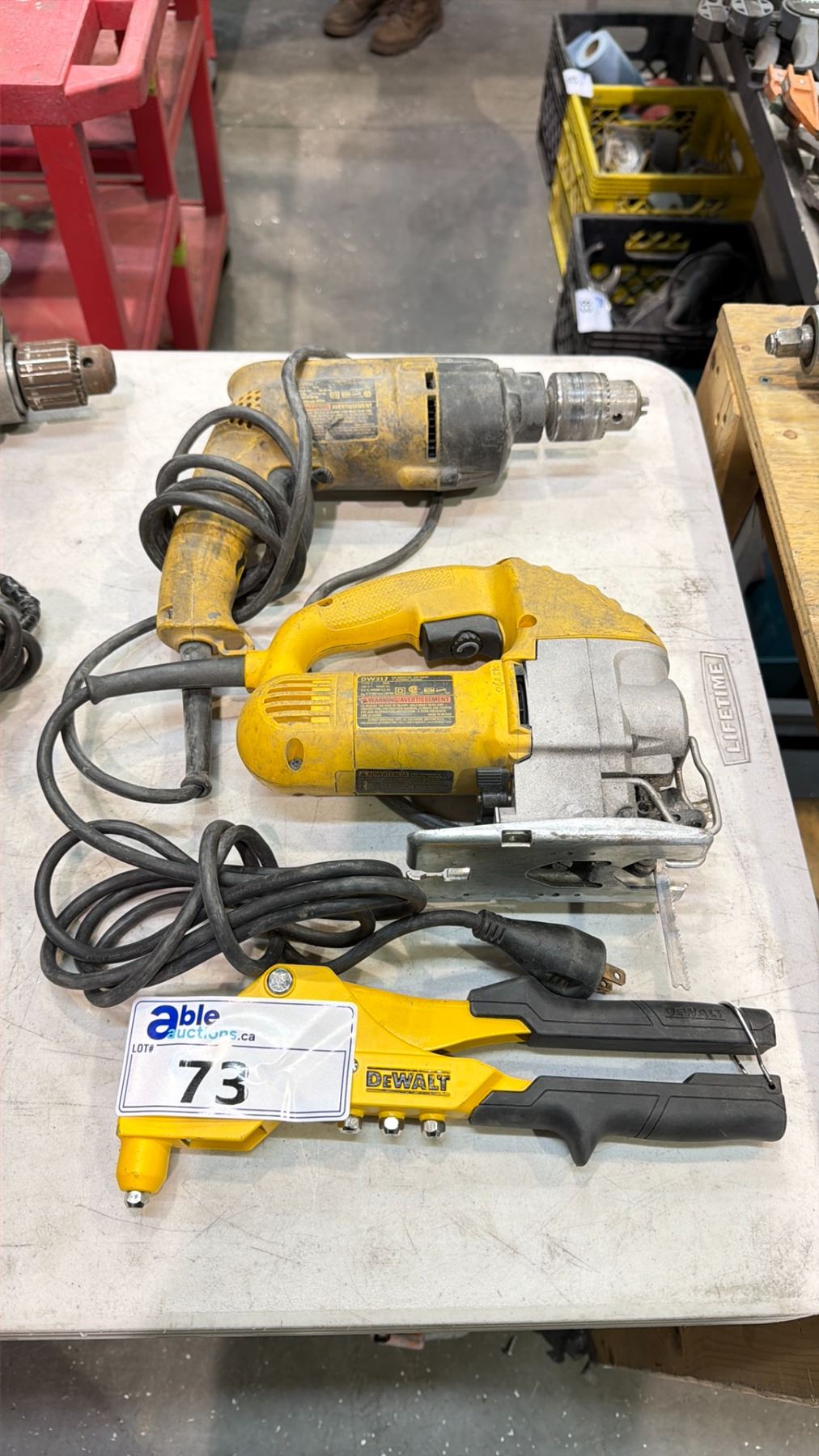DEWALT CORDED DRILL, CORDED ORBITAL SAW AND SWIVEL HEAD RIVETER