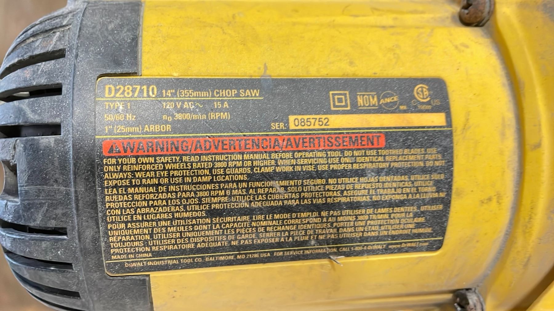 DEWALT D28710 YELLOW ELECTRIC CHOP SAW - 14" STATIONARY STYLE W/ BLACK BASE