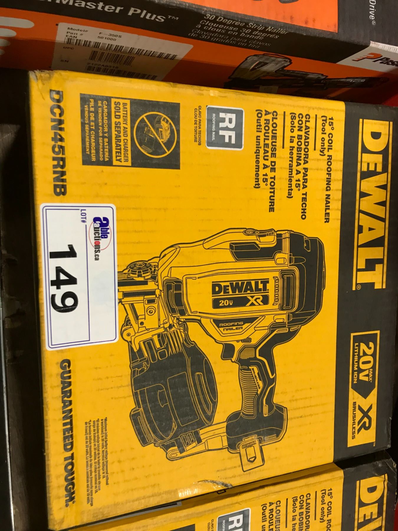 DEWALT DCN45RNB 20V CORDLESS ELECTRIC 15 DEGREE COIL ROOFING NAILER