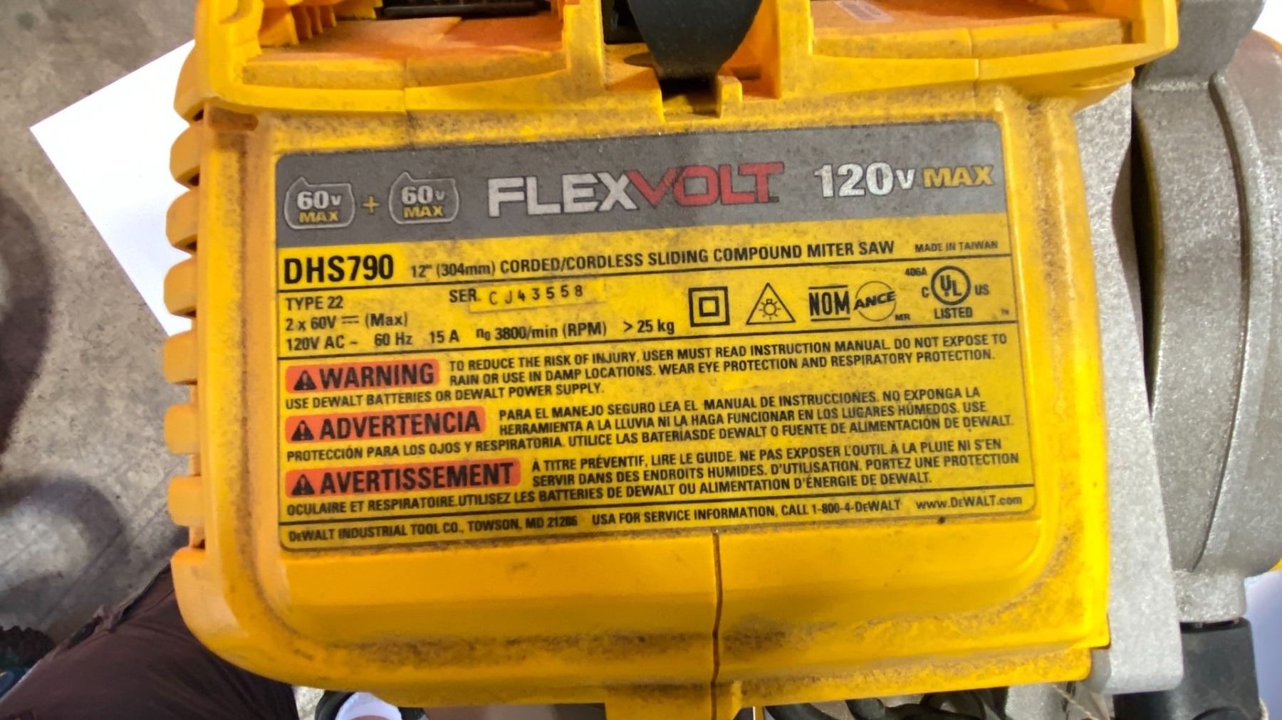 DEWALT DHS790 FLEXVOLT 12", 120V MAX DOUBLE BEVEL SLIDING COMPOUND MITER SAW WITH CORDED POWER SUPPLY