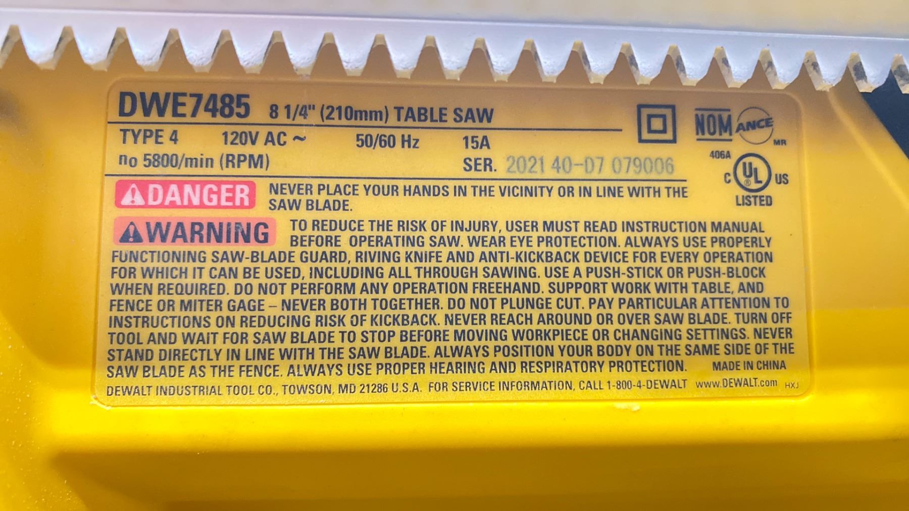 DEWALT DWE7485 ELECTRIC 8 1/4" COMPACT PORTABLE JOBSITE TABLE SAW