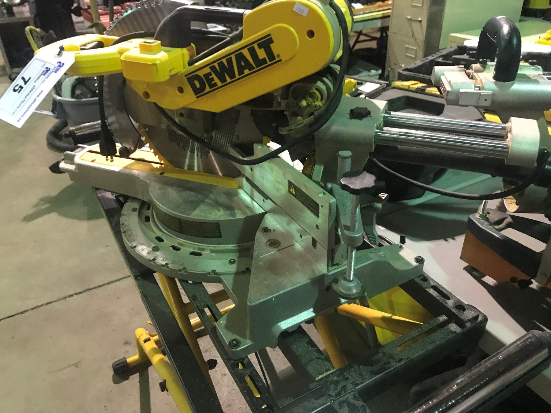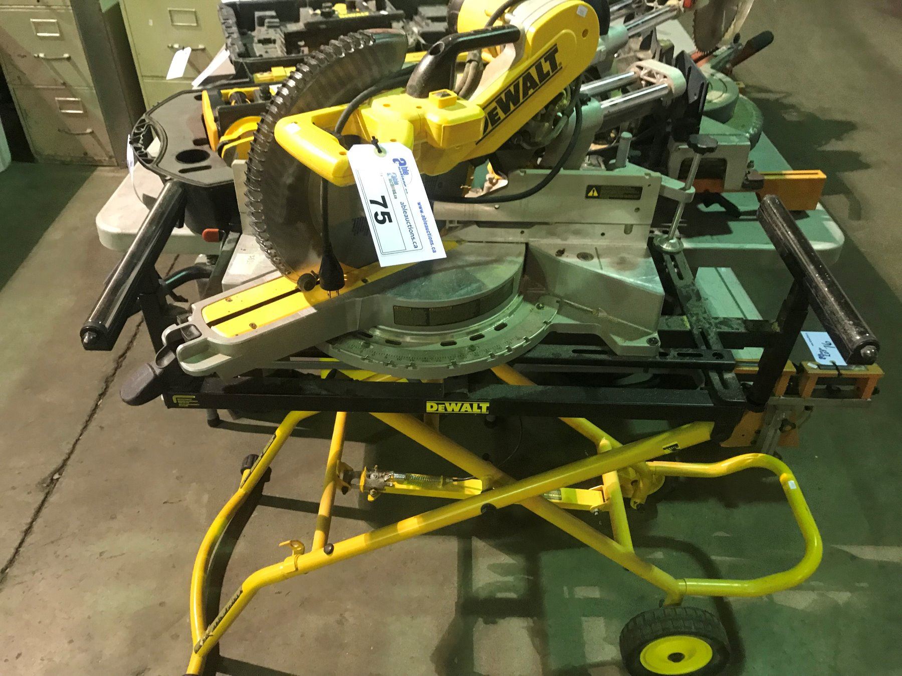 DEWALT DWS 780 12 INCH DOUBLE BEVEL SLIDING COMPOUND MITRE SAW ON DEWALT MITRE SAW STAND