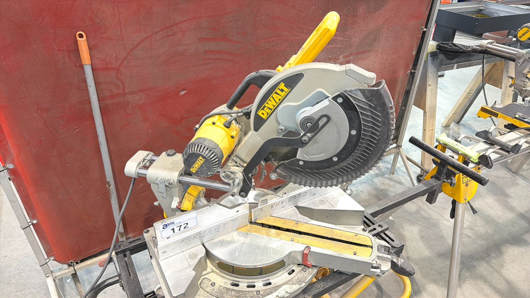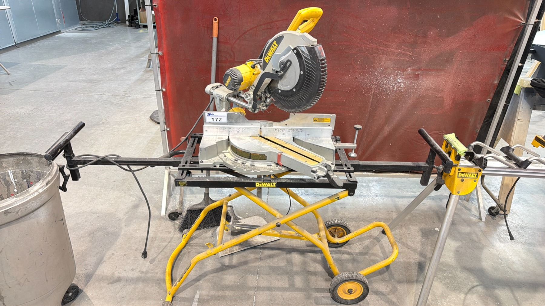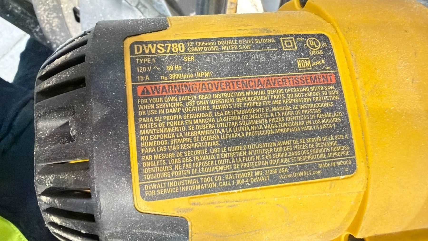 DEWALT DWS780 12" DOUBLE BEVELED COMPOUND MITER SAW ON FOLDING DEWALT STAND