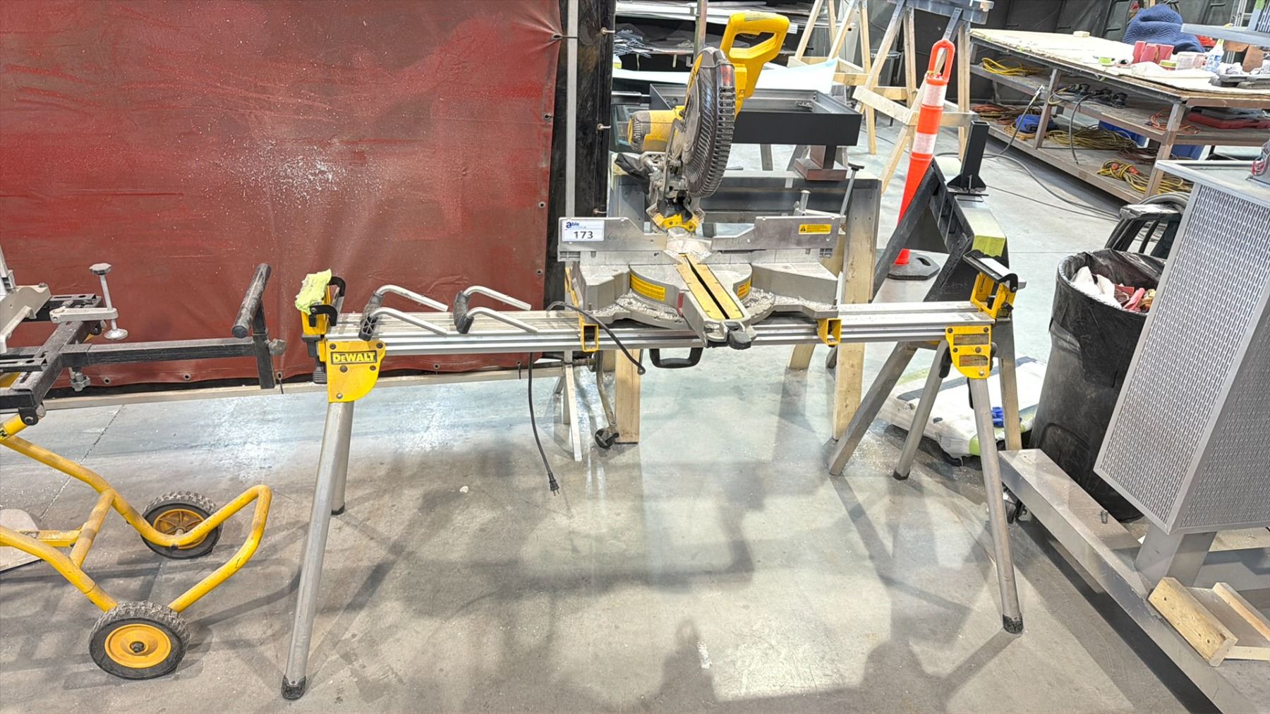 DEWALT DWS780 12" DOUBLE BEVELED COMPOUND MITER SAW ON MITER SAW DEWALT STAND