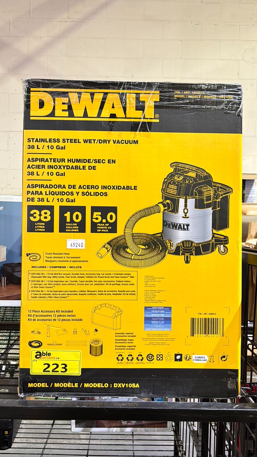 DEWALT STAINLESS STEEL 38L WET/DRY VACUUM (UNKNOWN WORKING CONDITION)