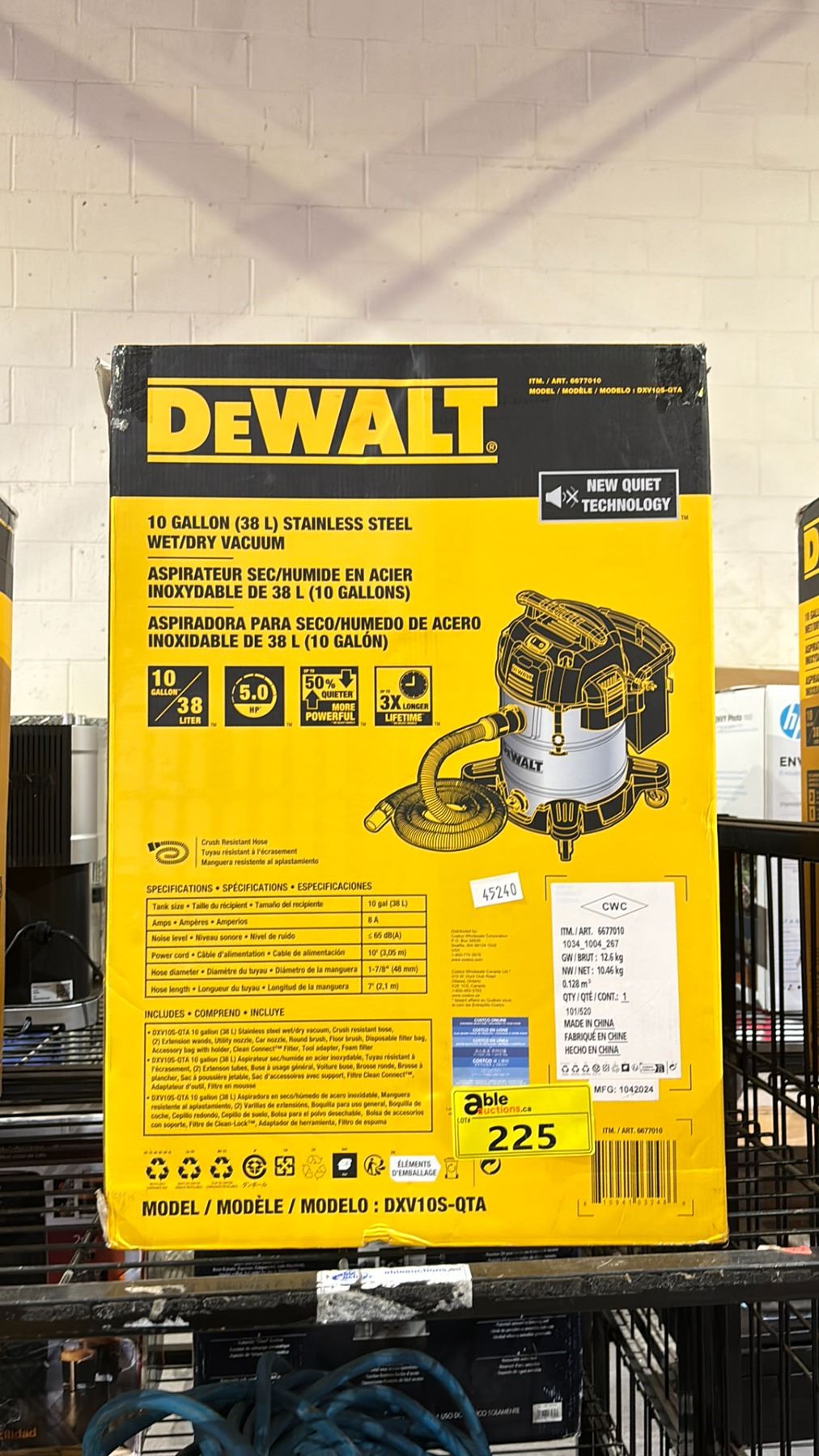 DEWALT STAINLESS STEEL 38L WET/DRY VACUUM (UNKNOWN WORKING CONDITION)