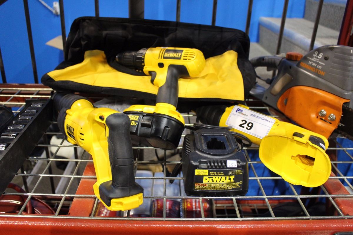DEWALT TOOL SET - INCLUDING 2 RECIPROCATING SAWS, 1 CORDLESS 18V DRILL AND CHARGER WITH BAG