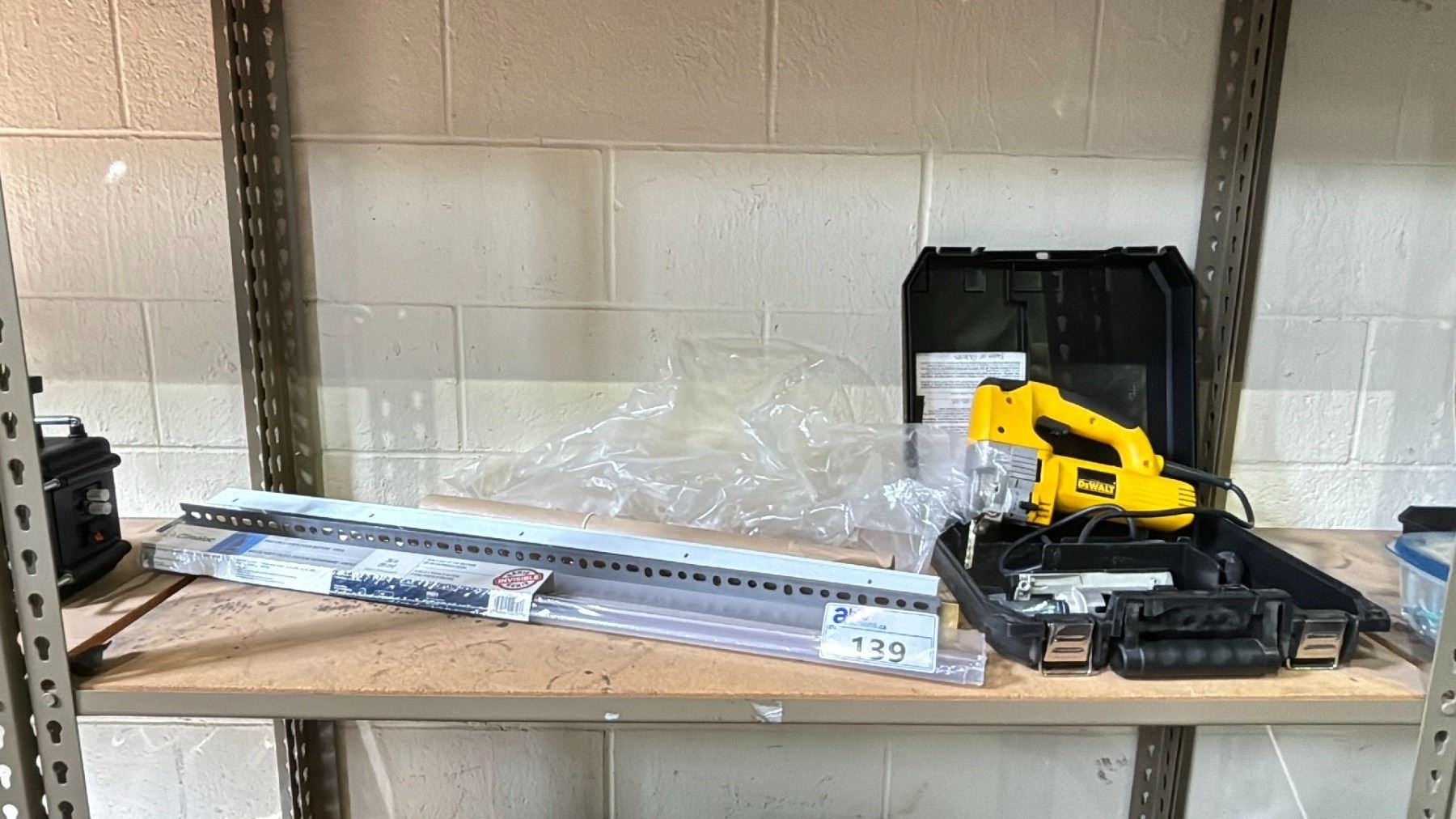 DEWALT VARIABLE SPEED 16MM JIGSAW, DOOR TRIM, AND ROLL OF PARCHMENT PAPER