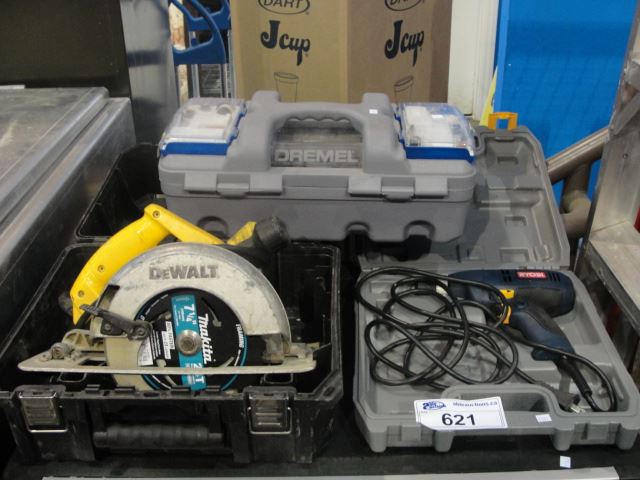 DEWAULT SKILL SAW, RYOBI ELECTRIC DRILL AND DREMIL SET