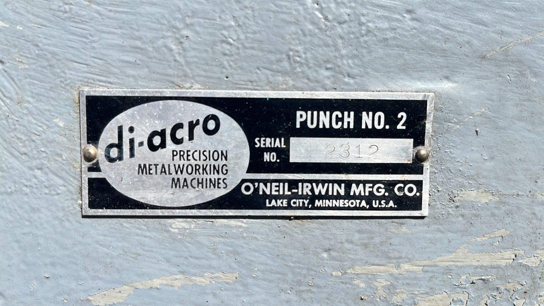 DI-ACRO PUNCH NO. 2 SERIAL #2312 ON METAL 3 TIER WORK TABLE 15" X 26" X 60"