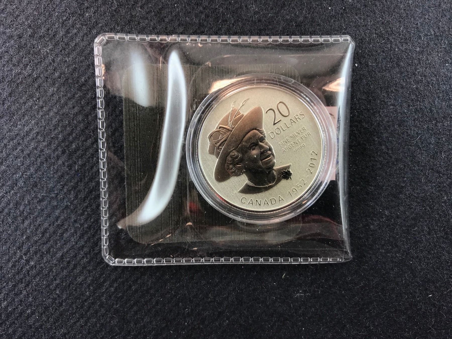 DIAMOND JUBILE .999 SILVER 1952 - 2012 CANADA 20 DOLLARS COLLECTOR COIN - TAX EXEMPT
