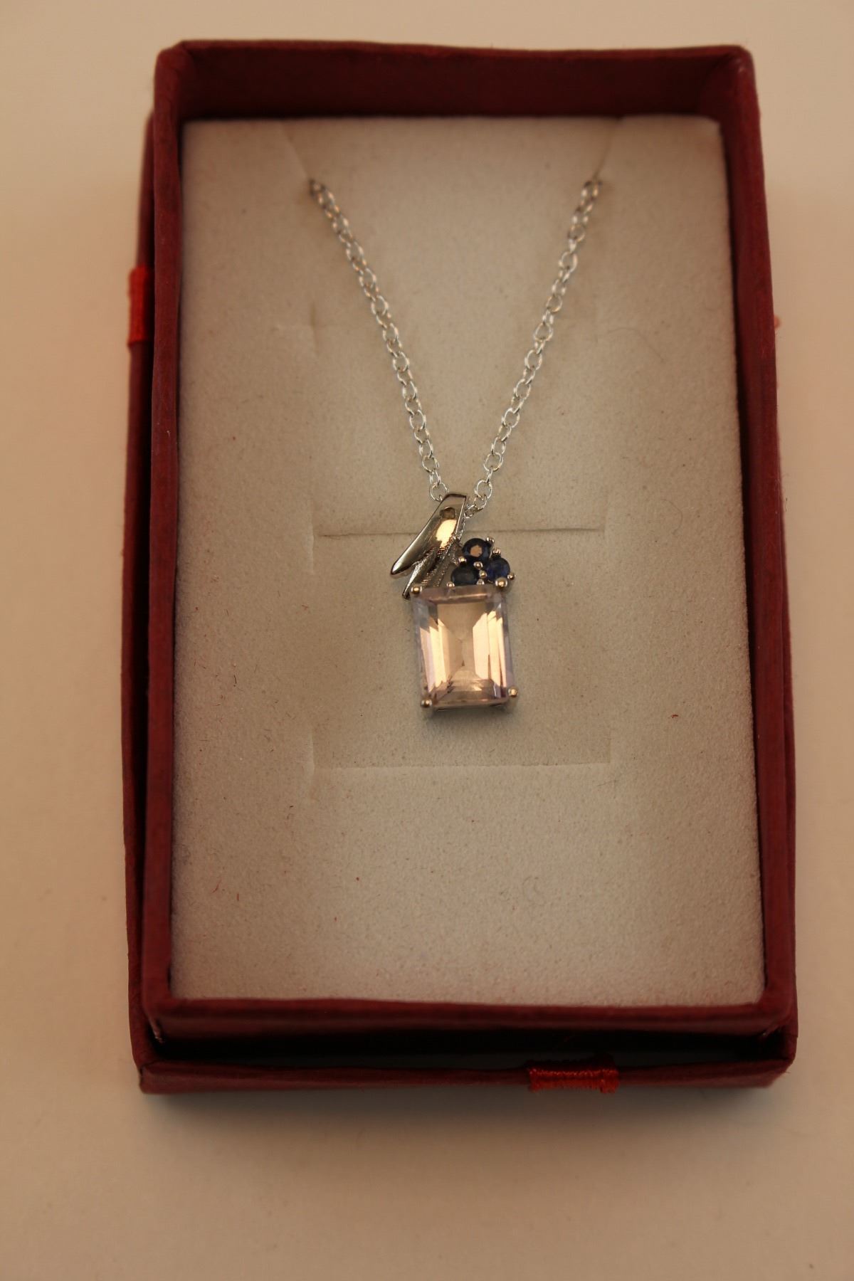 DIAMOND, PINK AMETHYST AND SAPPHIRE NECKLACE, EMERALD + ROUND CUT GEMSTONES, STERLING SILVER