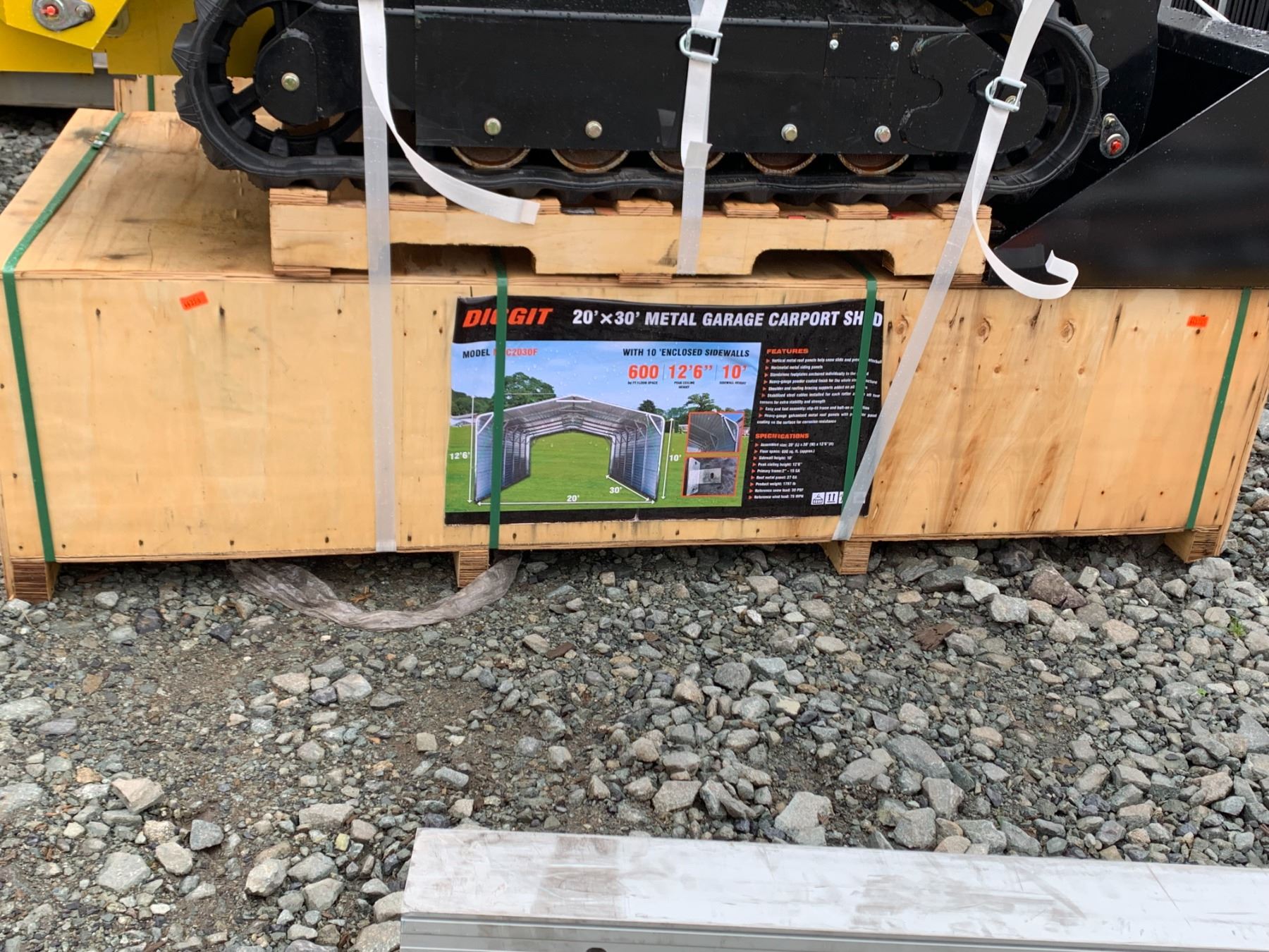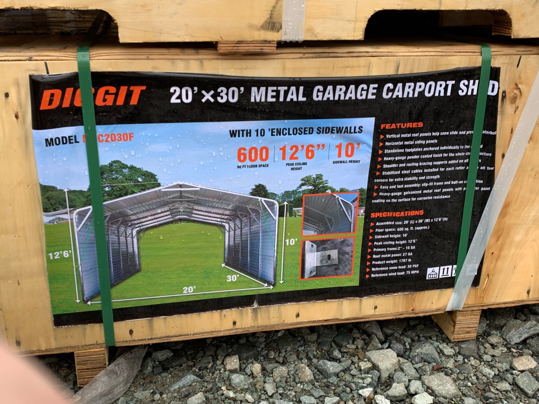 DIGGIT 20' X 30' METAL GARAGE SHED WITH 10 ENCLOSED 600 SG FT APPROX 12'6" PEAK HEIGHT * IN CRATE *