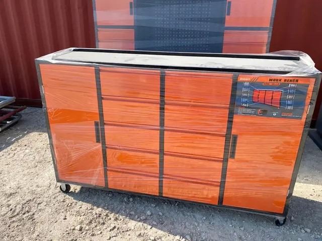 DIGGIT ORANGE / BLACK MOBILE 10 DRAWER 2 DOOR 77"W X 20"D X 44"H MOBILE WORK BENCH