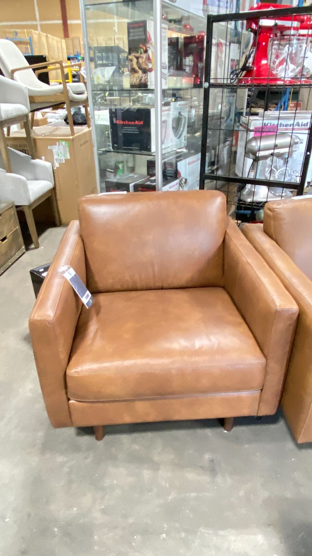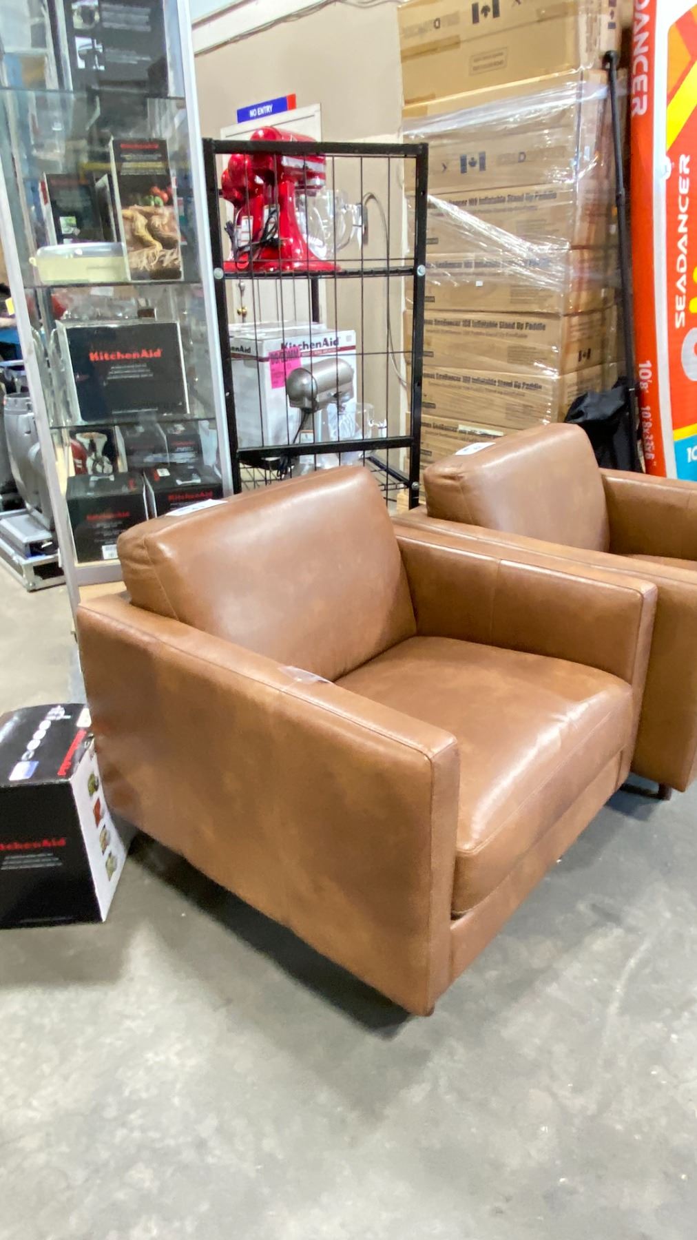 DIGIO MODELED BROWN ITALIAN LEATHER DESIGNER ARMCHAIR 34"W X 34"D X 34"H