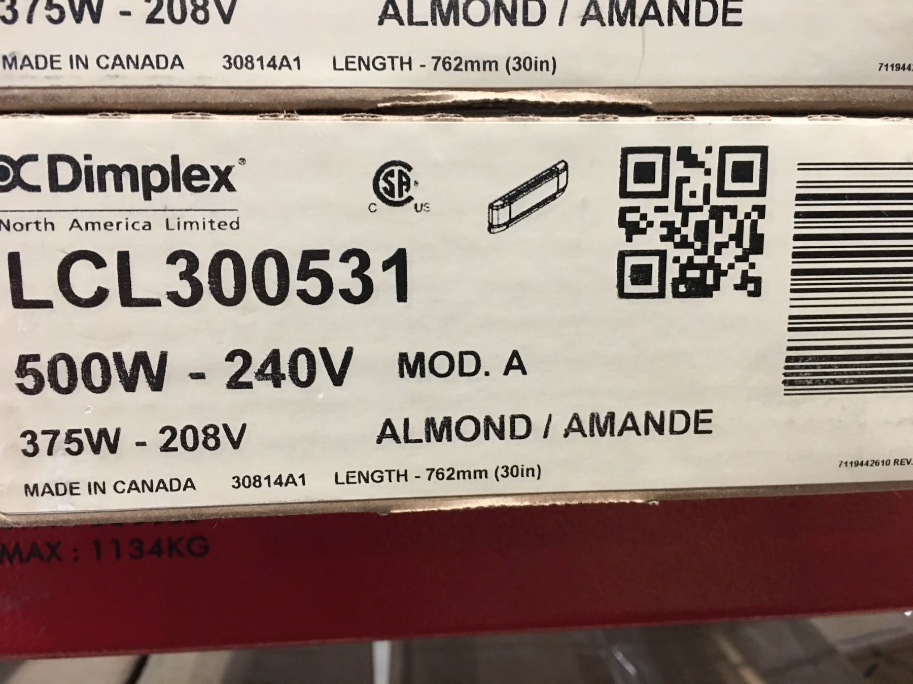 DIMPLEX 500W-24V WALL HEATER (30 IN) - ALMOND - D