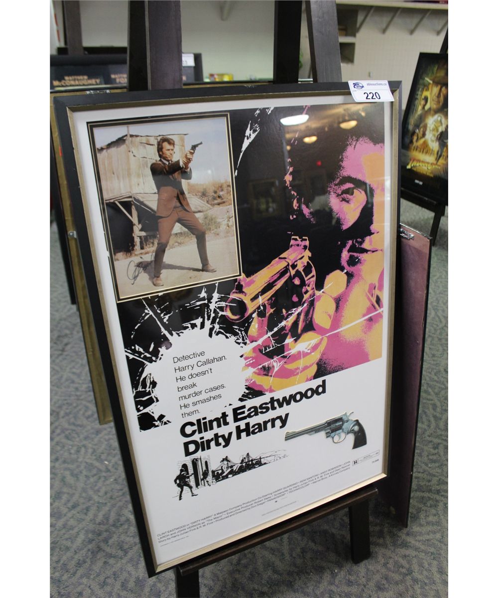 DIRTY HARRY, CUSTOM FRAMED 1 SHEET AND COLOUR PHOTO, SIGNED BY CLINT EASTWOOD