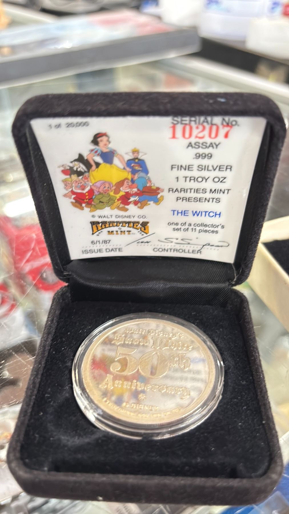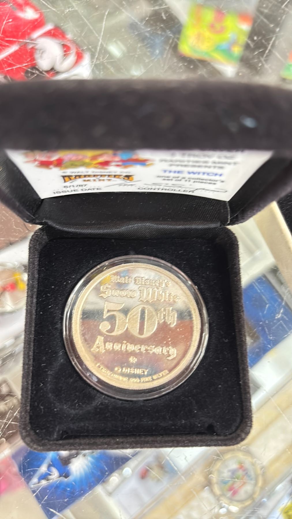 DISNEY 60 YEARS COMMEMORATIVE COINS, DISNEY 10TH ANNIVERSARY TOKEN & DISNEY SNOW WHITE 50TH ANNIVERSARY COIN