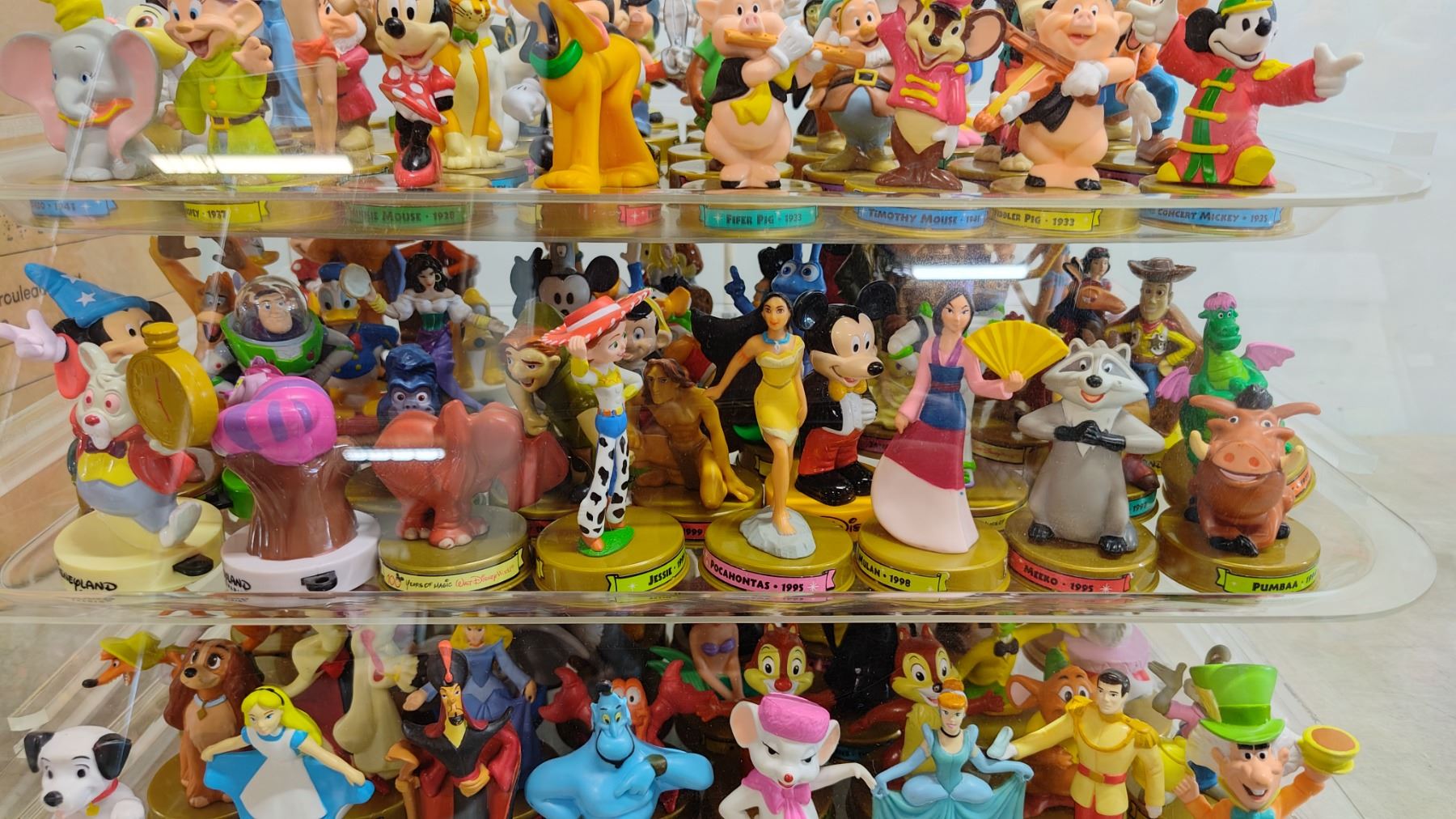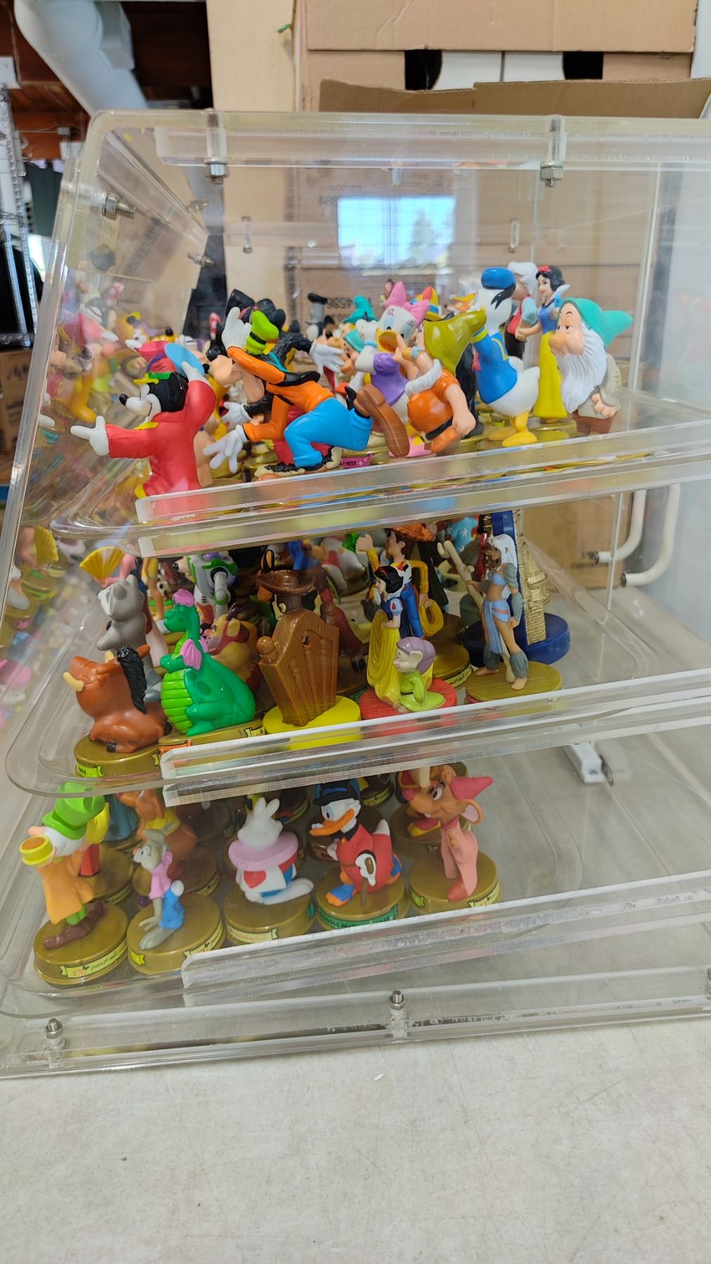 DISPLAY CASE OF DISNEY MCDONALDS TOY FIGURINES