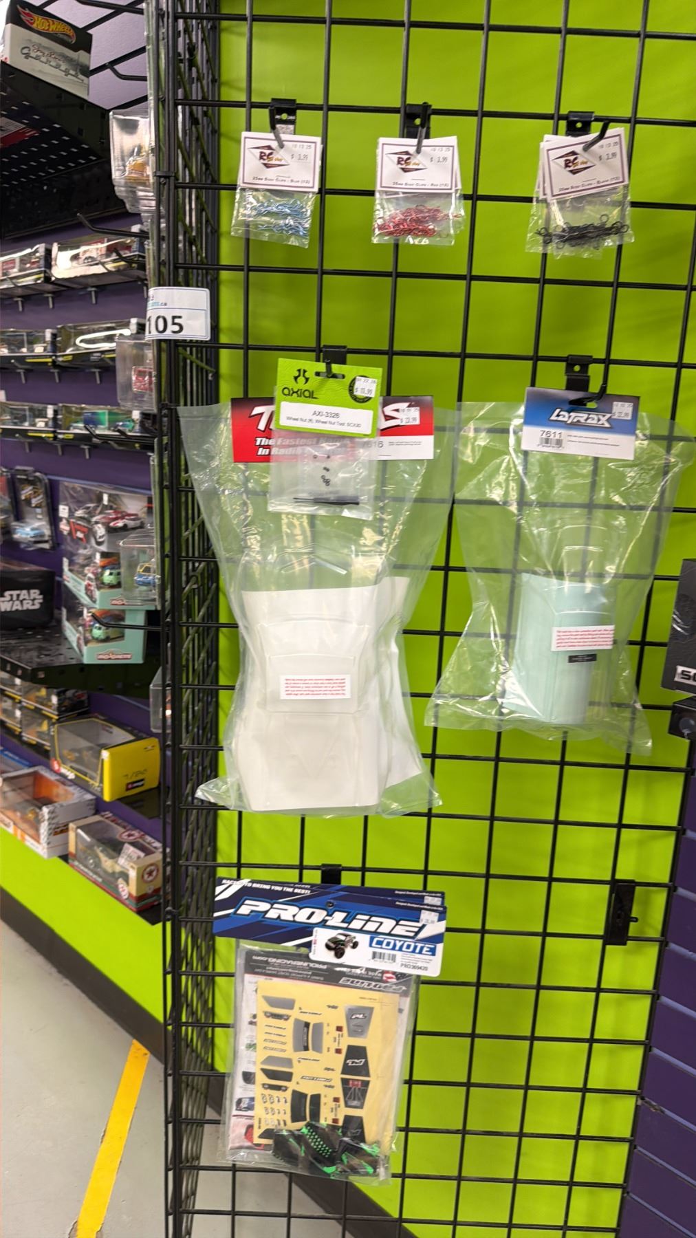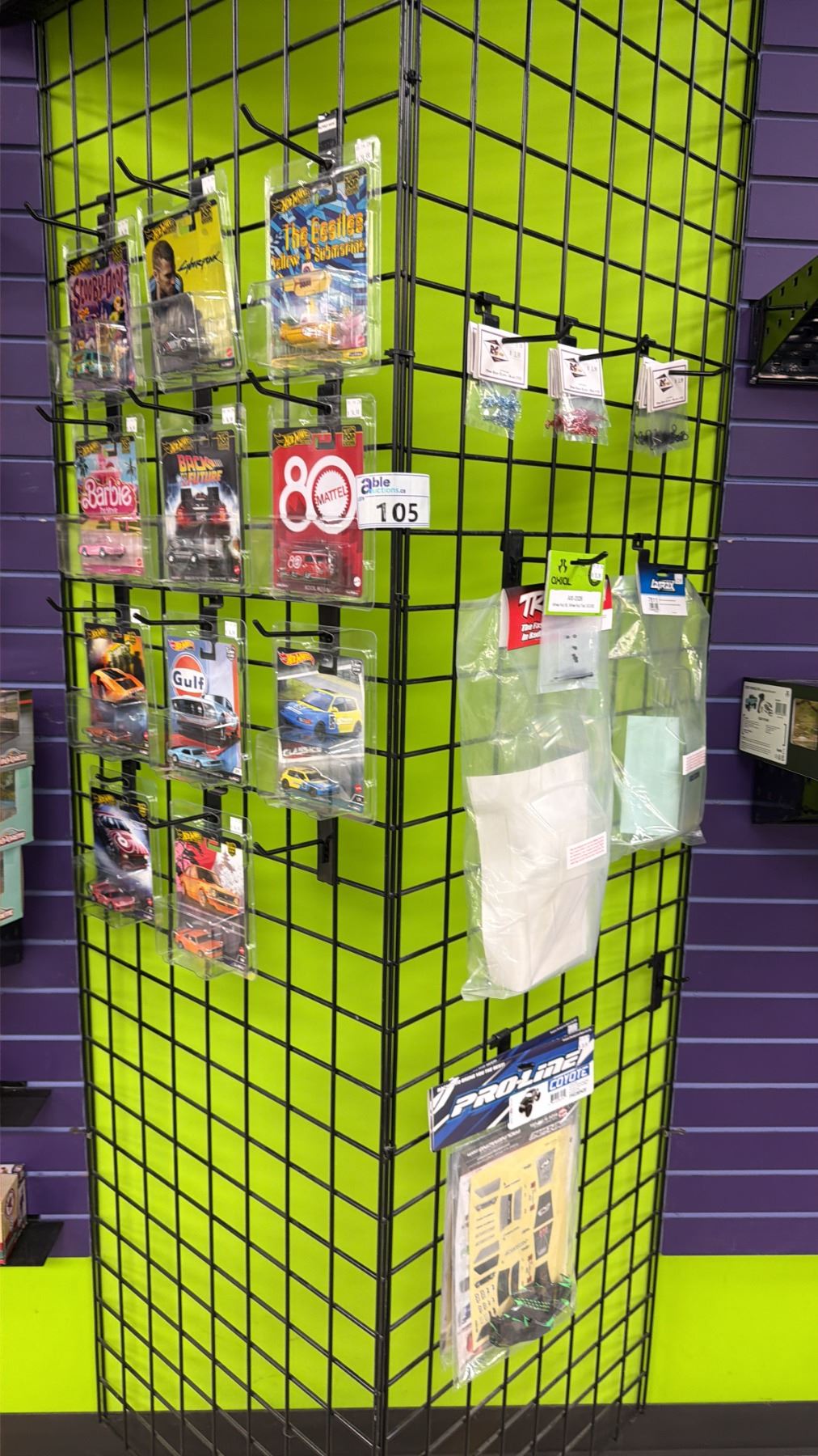 DISPLAY RACK OF ASSORTED HOT WHEELS CARS & MODEL ACCESSORIES (RACK NOT INCLUDED)