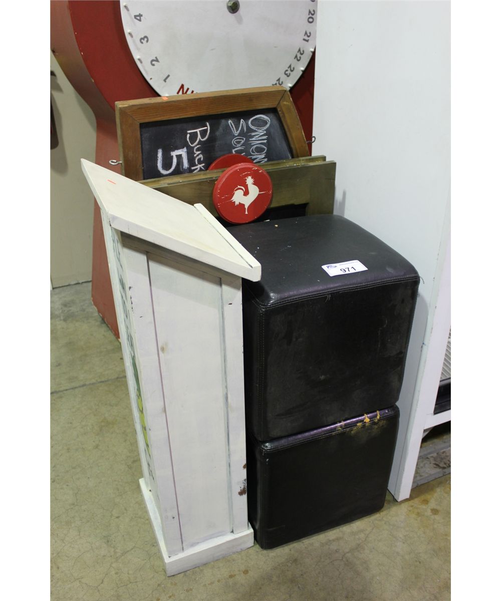 DISPLAY SIGNS, HOSTESS STATION AND LEATHER STOOLS