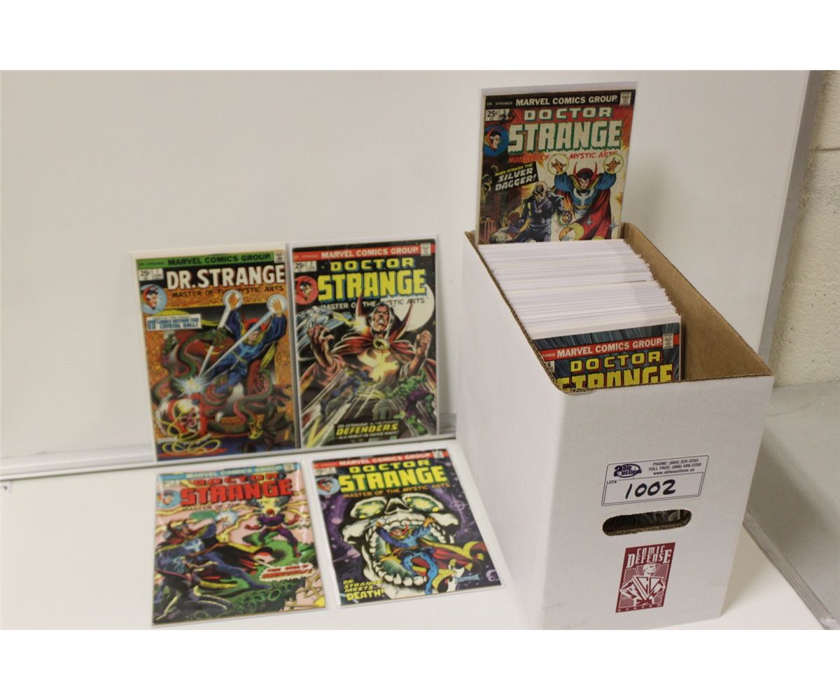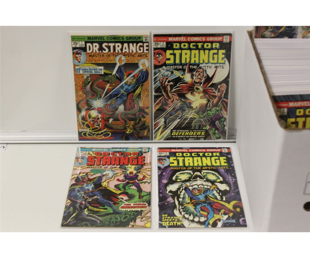 DOCTOR STRANGE, NEAR COMPLETE SET.  74 DIFFERENT ISSUES BETWEEN #1-81 (LAST ISSUE) + ANNUAL (1974-87)  INCLUDES #1-58 CONSECUTIVE MINUS 1 ISSUE. MIXED GRADES, WITH MANY HIGHER GRADE.  #1 IS A VERY SHARP & SUPPLE COPY. SWEET RUN !