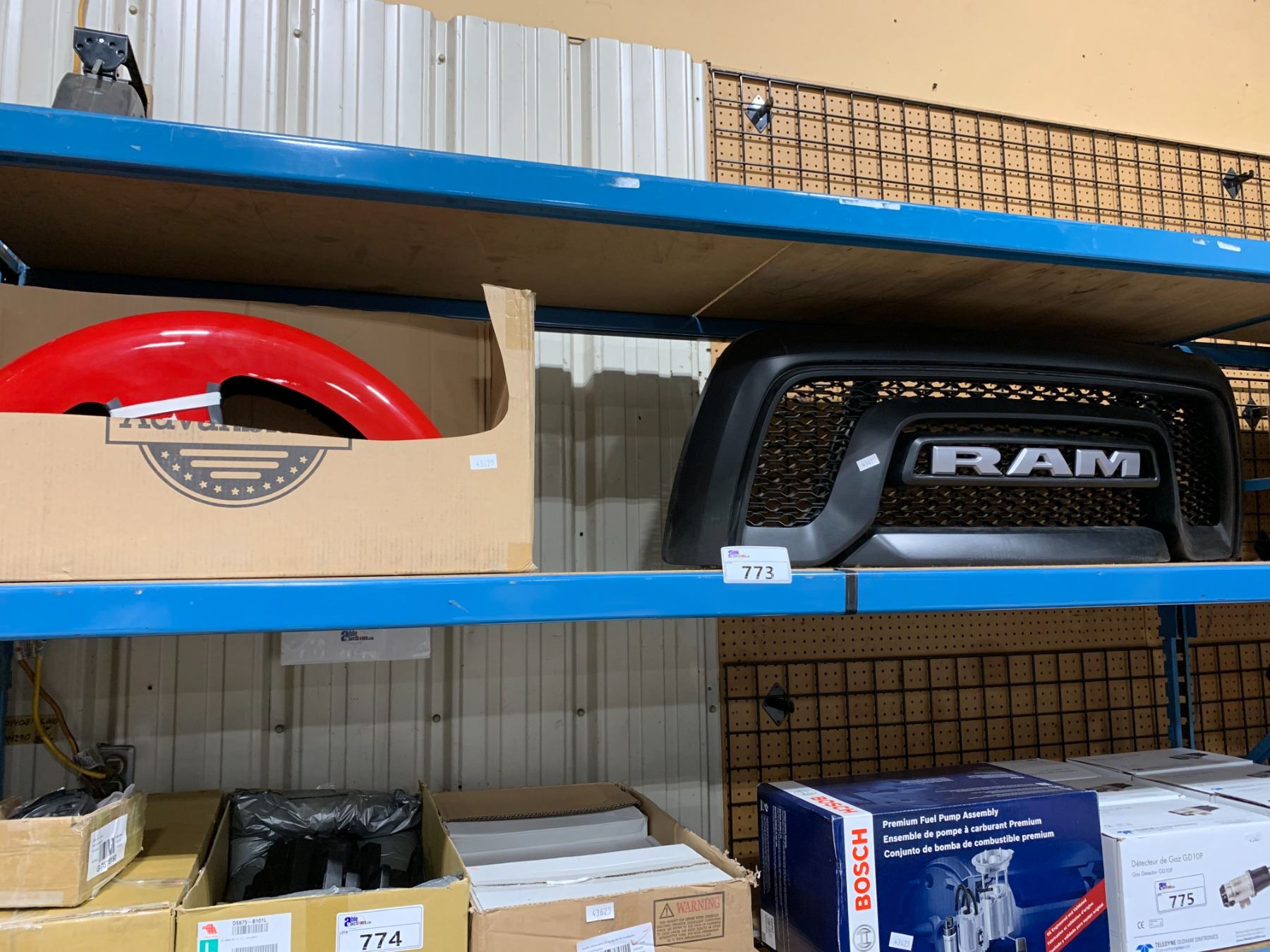 DODGE RAM VEHICLE GRILLE ASSEMBLY AND ONE MOTORCYCLE FENDER