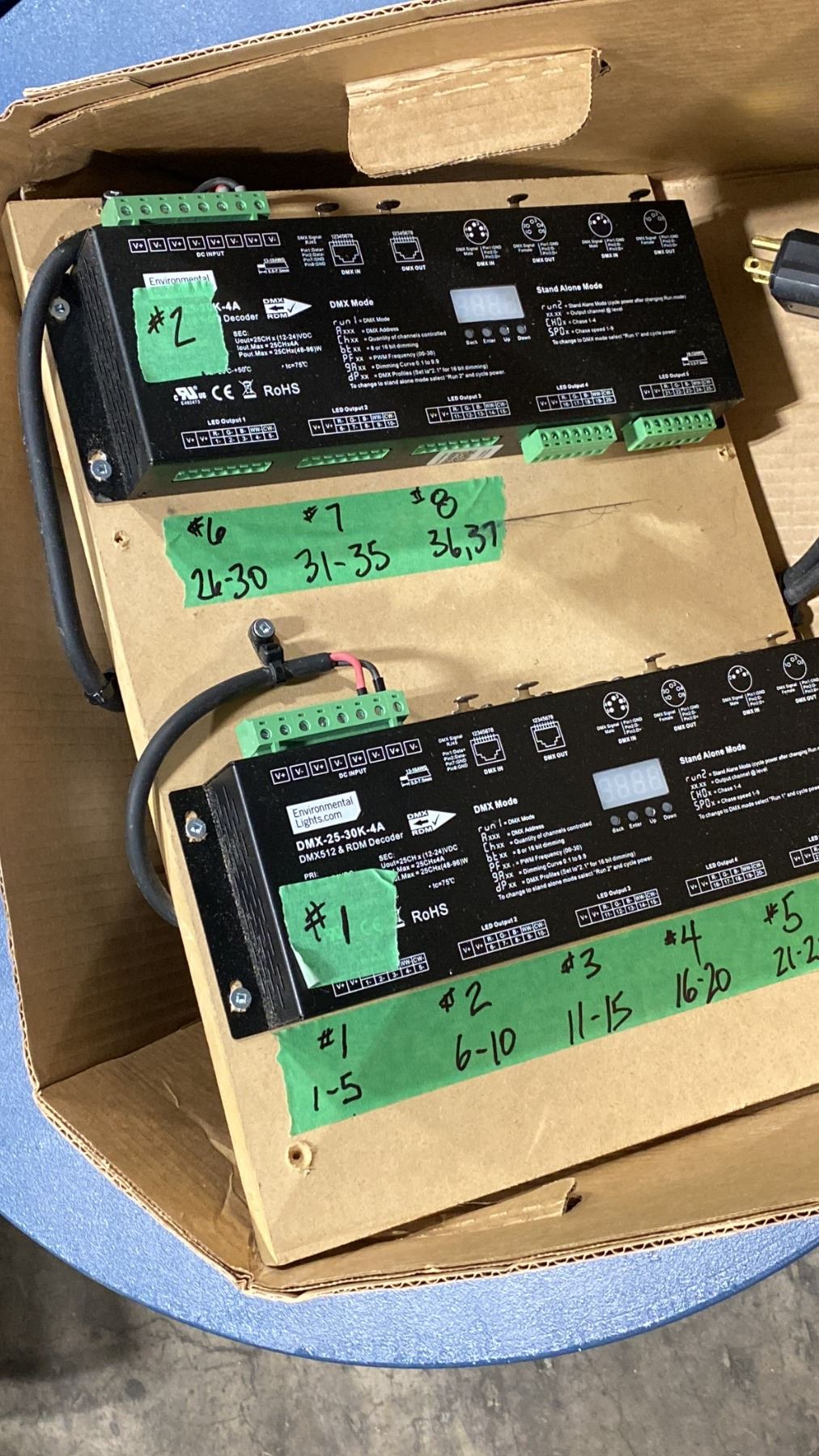 DOLLHOUSE SPECIAL EFFECTS PROP WITH ELECTRIC PUMP, DIVERTER, ULINE PLASTIC STORAGE BIN & 2 DIGITAL DECODERS