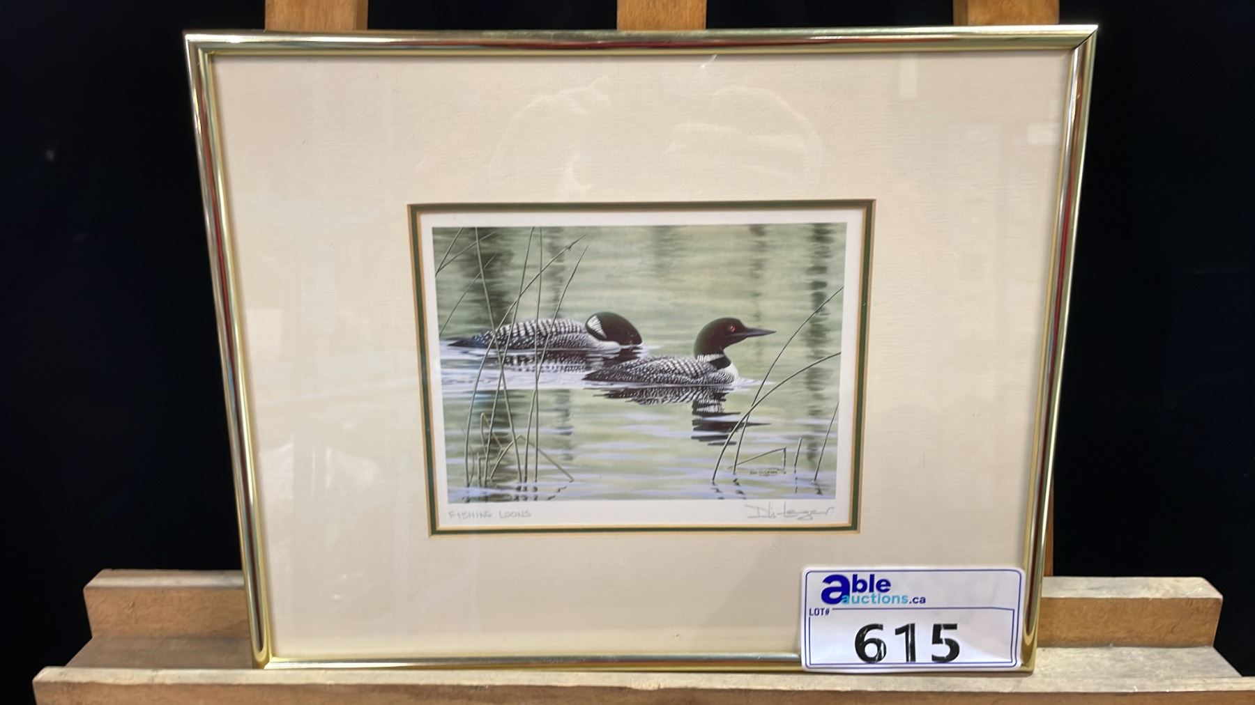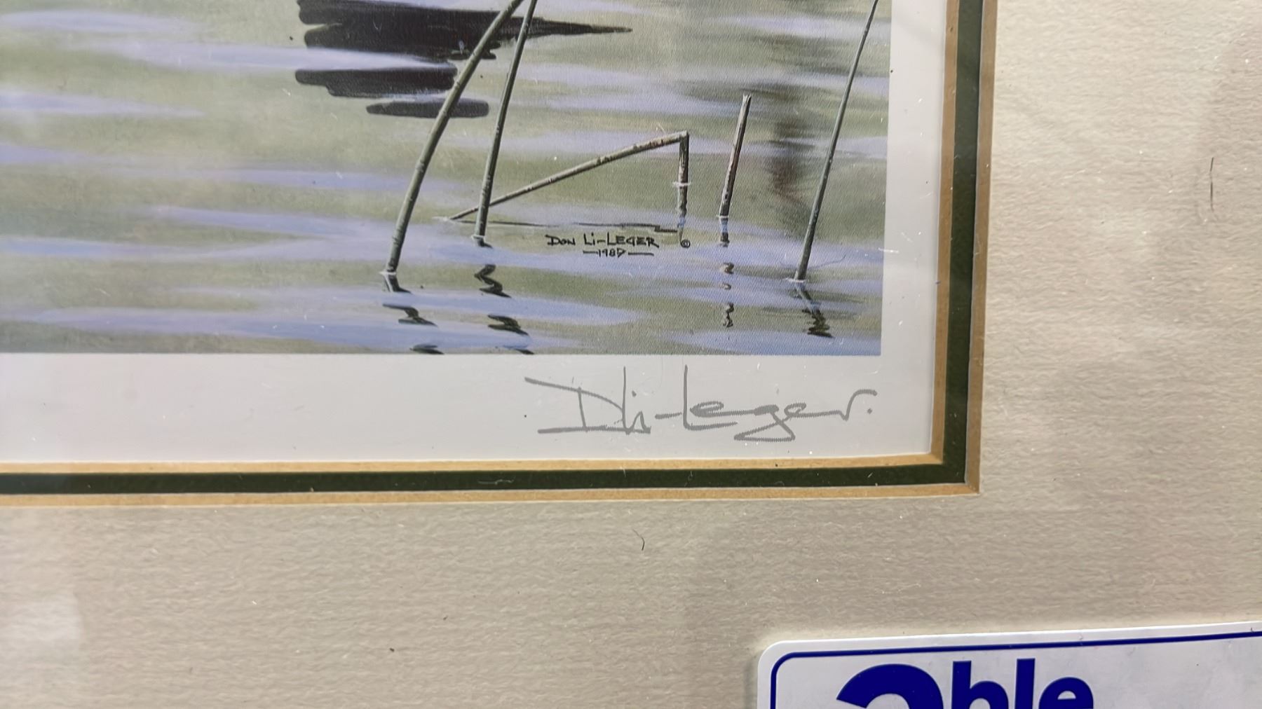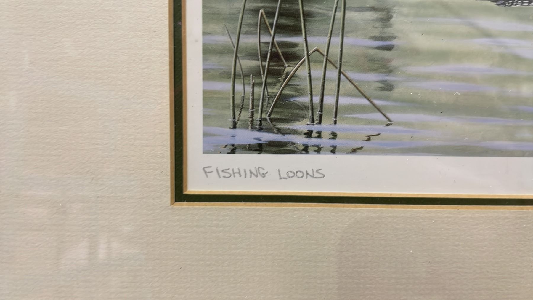 DON LI-LEGER "FISHING LOONS" FRAMED SIGNED 14.5" X 11.5" PRINT - ARTIST INFO ON BACK