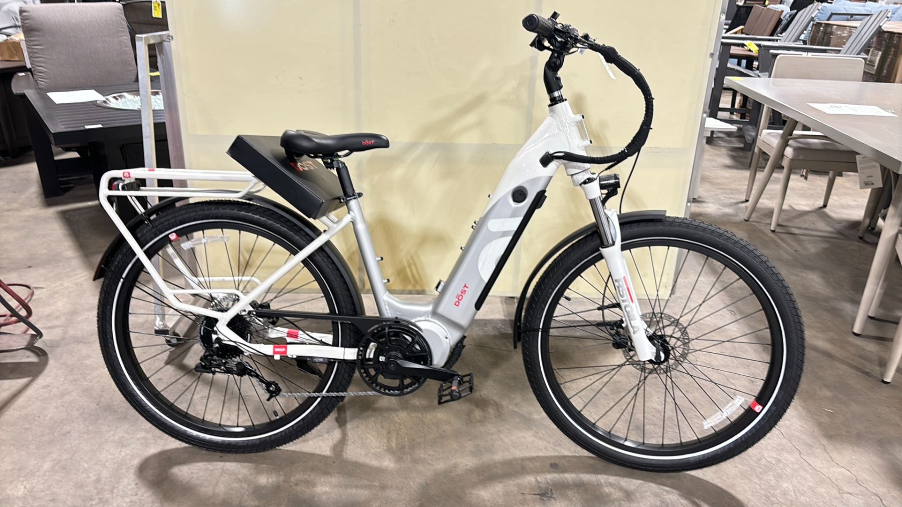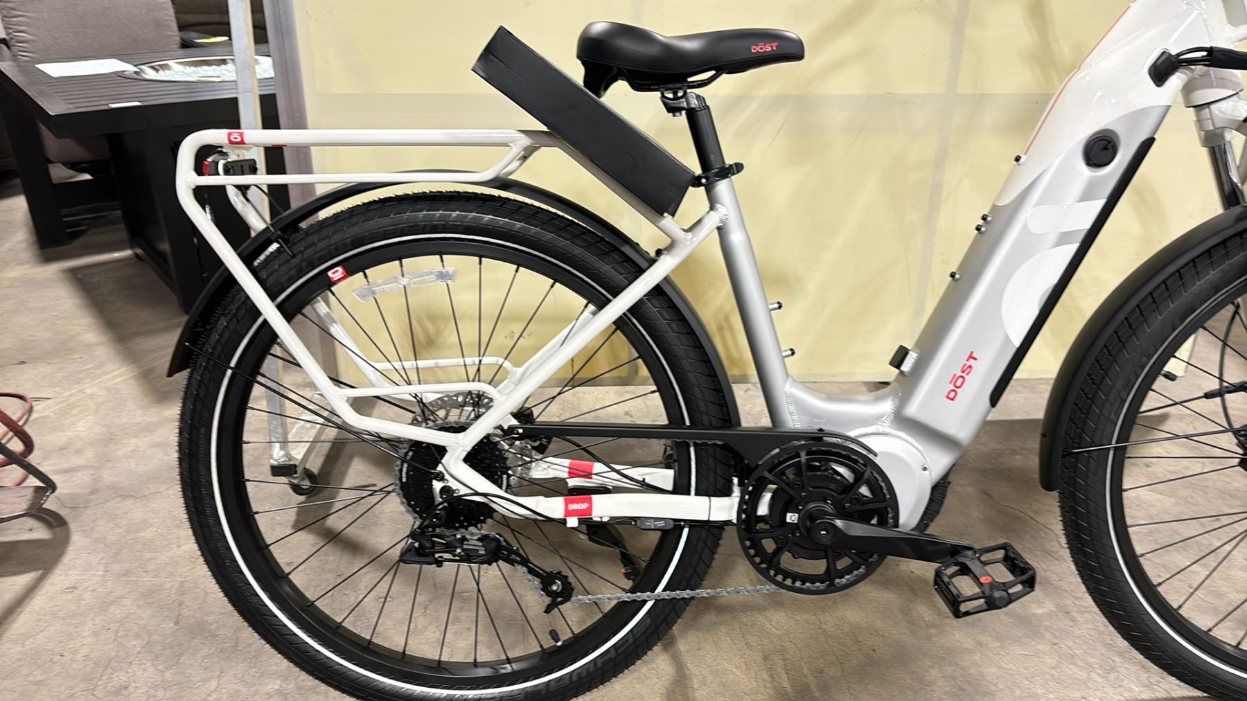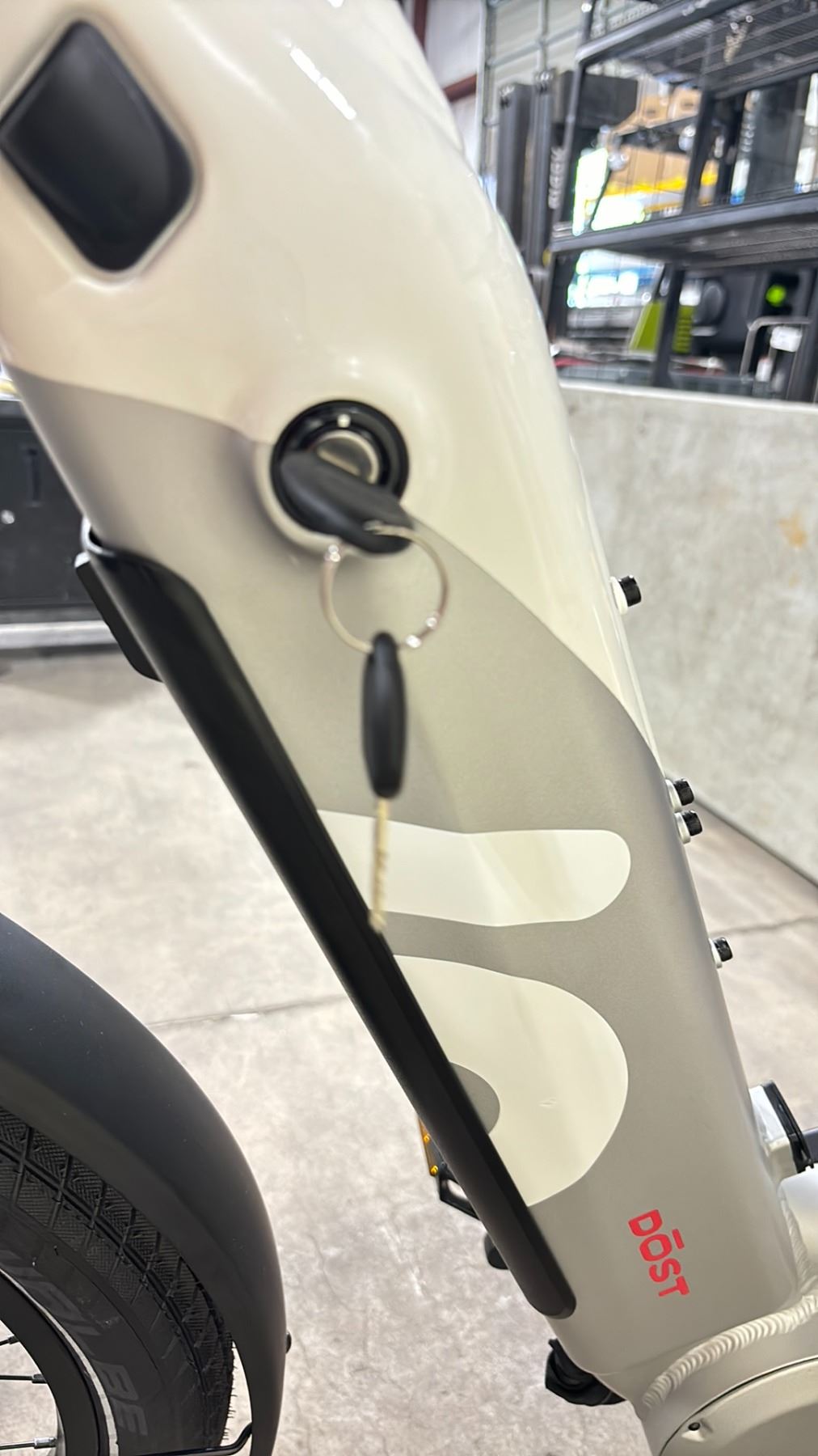 DOST DROP GLACIER WHITE 9 SPEED, 17.5"ELECTRIC BIKE; 500W MID DRIVE MOTOR, 100 KM RANGE, 120 NM TORQUE, 48V 14 AH LITHIUM ION FRAME BATTERY WITH 48V 2 AMP SMART CHARGER, DOST MULTI COLOR BACKLIT DIGITAL DISPLAY LCD WITH USB CHARGER, INTEGRATED FRONT + REAR LIGHT, INTELLIGENT 5 LEVEL PEDAL ASSIST, 27.5" TIRES ON ALUMINUM ALLOY RIMS, REAR RACK WITH 100 LB CARRYING CAPACITY AND A MAX LOAD ( RIDER + CARGO ) OF 300LBS *IN BOX*