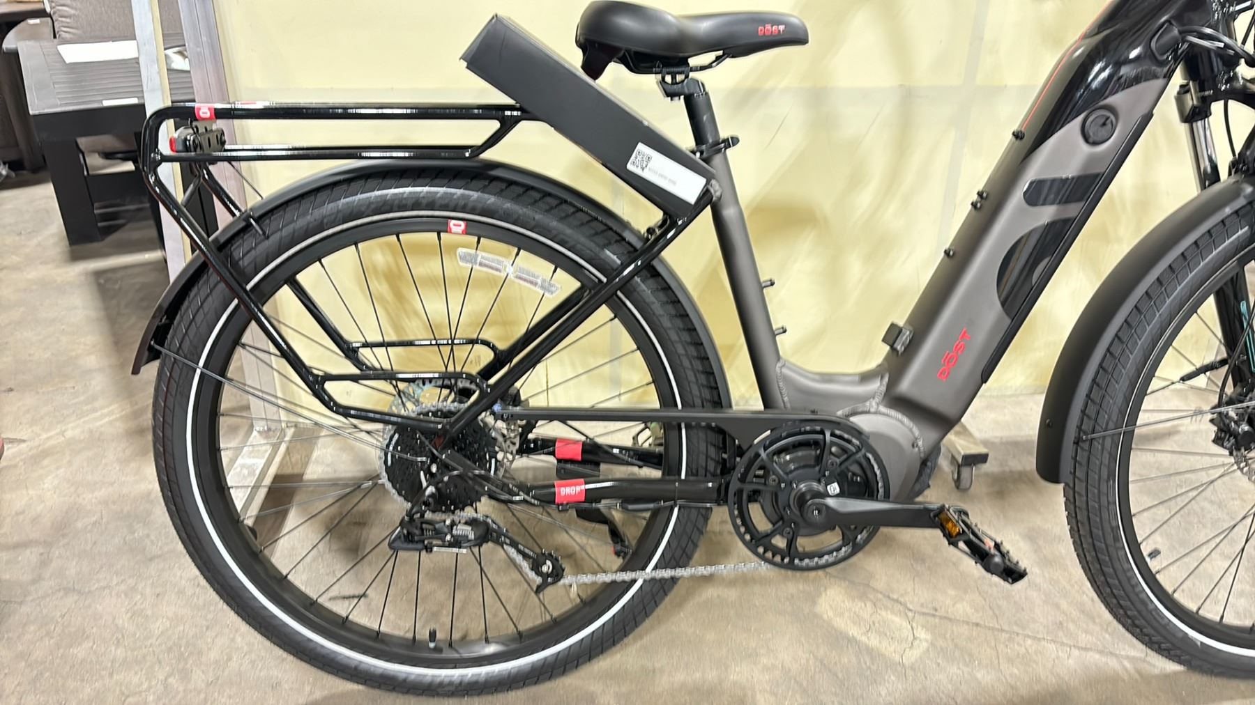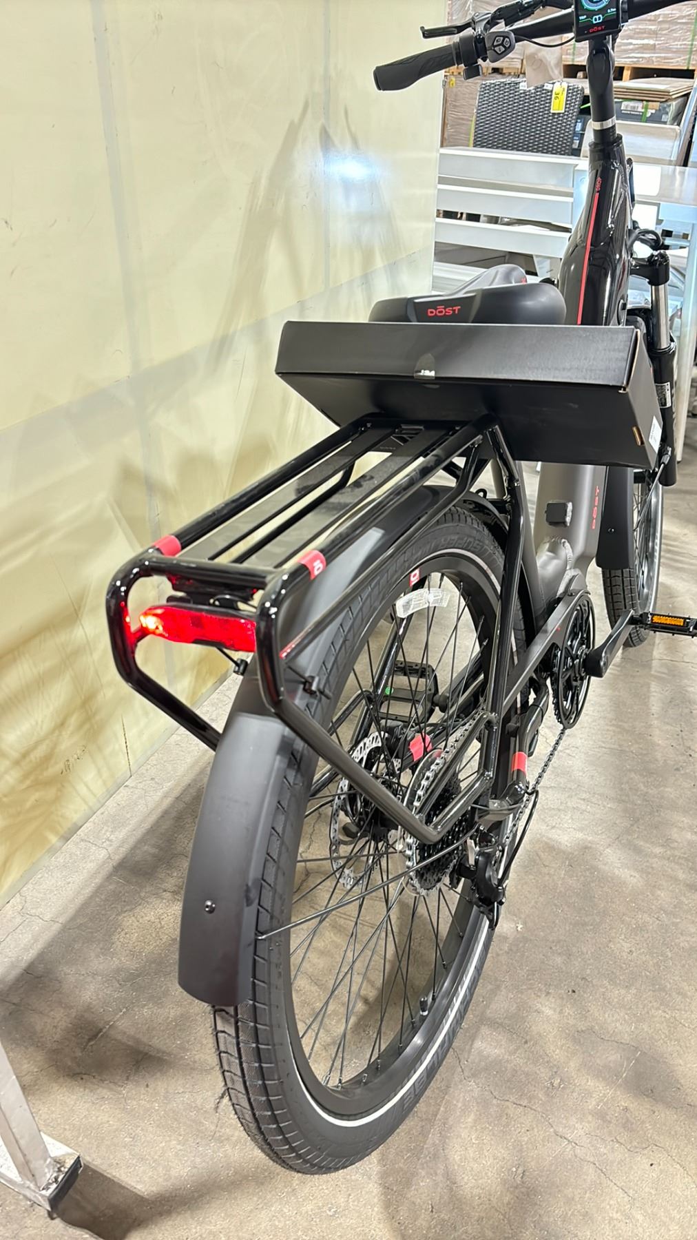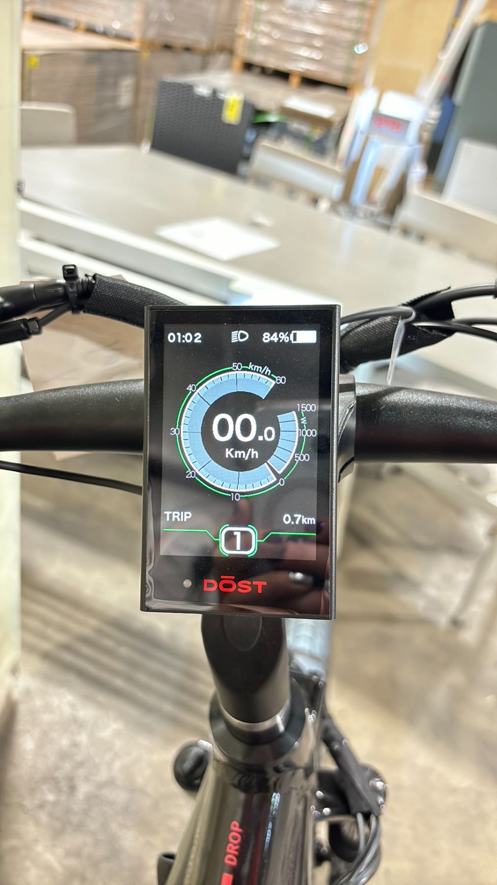 DOST DROP SPACE GREY 9 SPEED, 17.5"ELECTRIC BIKE; 500W MID DRIVE MOTOR, 100 KM RANGE, 120 NM TORQUE, 48V 14 AH LITHIUM ION FRAME BATTERY WITH 48V 2 AMP SMART CHARGER, DOST MULTI COLOR BACKLIT DIGITAL DISPLAY LCD WITH USB CHARGER, INTEGRATED FRONT + REAR LIGHT, INTELLIGENT 5 LEVEL PEDAL ASSIST, 27.5" TIRES ON ALUMINUM ALLOY RIMS, REAR RACK WITH 100 LB CARRYING CAPACITY AND A MAX LOAD ( RIDER + CARGO ) OF 300LBS *IN BOX*