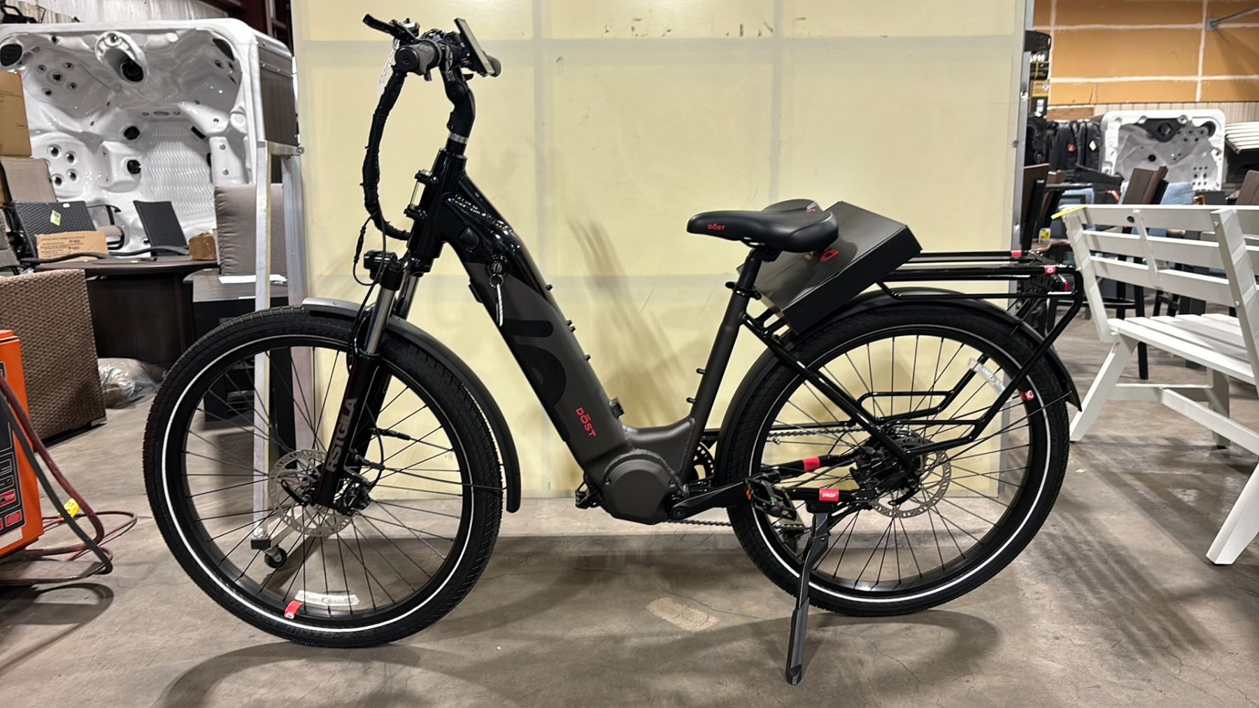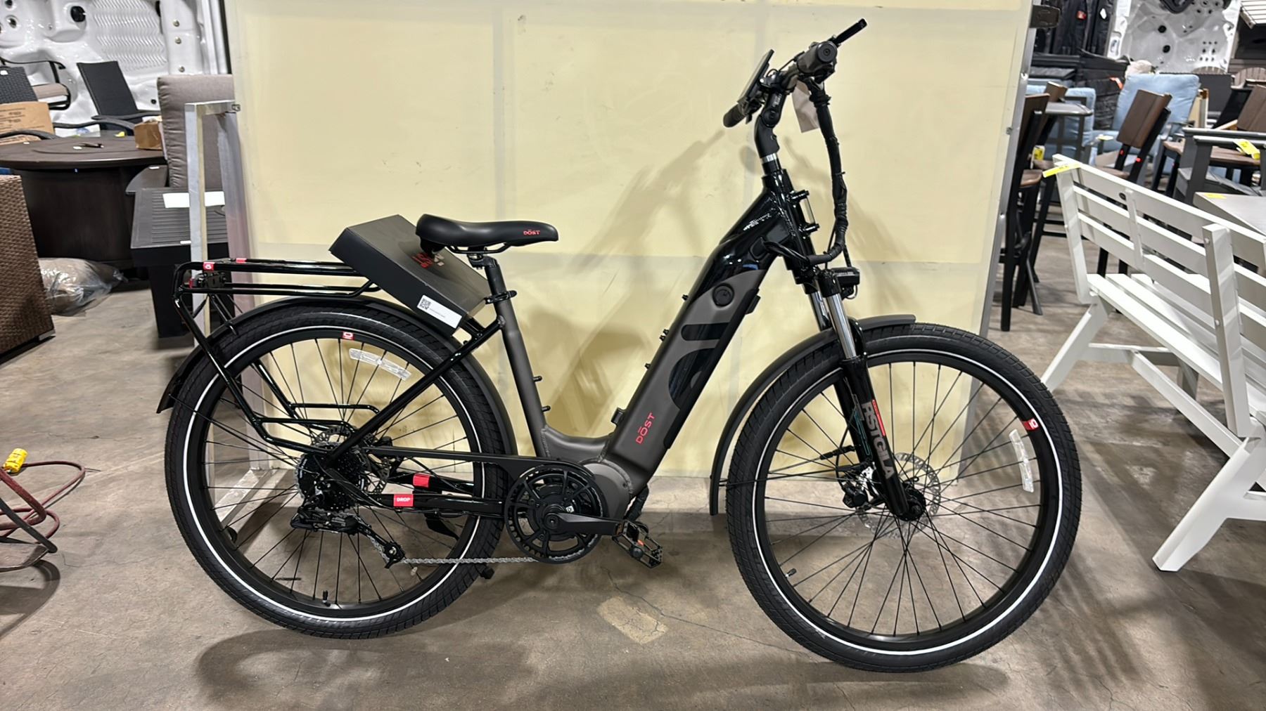 DOST DROP SPACE GREY 9 SPEED, 17.5"ELECTRIC BIKE; 500W MID DRIVE MOTOR, 100 KM RANGE, 120 NM TORQUE, 48V 14 AH LITHIUM ION FRAME BATTERY WITH 48V 2 AMP SMART CHARGER, DOST MULTI COLOR BACKLIT DIGITAL DISPLAY LCD WITH USB CHARGER, INTEGRATED FRONT + REAR LIGHT, INTELLIGENT 5 LEVEL PEDAL ASSIST, 27.5" TIRES ON ALUMINUM ALLOY RIMS, REAR RACK WITH 100 LB CARRYING CAPACITY AND A MAX LOAD ( RIDER + CARGO ) OF 300LBS *IN BOX*