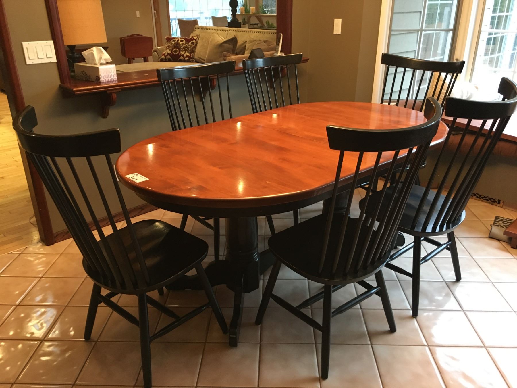 DOUBLE PEDESTAL COUNTRY DINING TABLE SET - NATURAL & BLACK WITH 6 CHAIRS & 2 EXTENSION LEAVES
