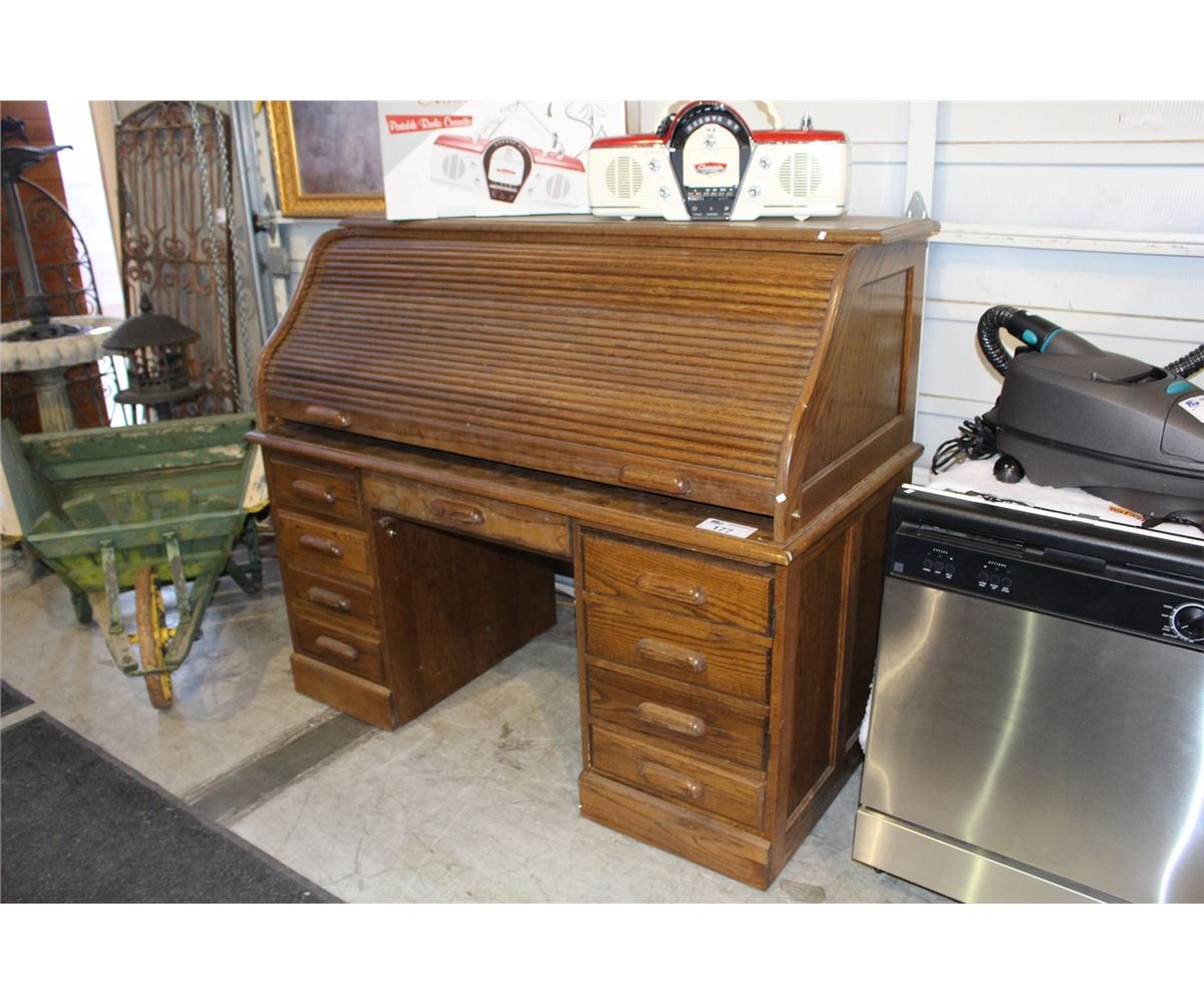 DOUBLE PEDESTAL OAK ROLL TOP DESK