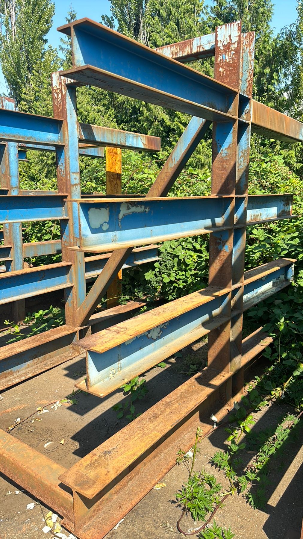 DOUBLE SIDED CANTILEVER STEEL MATERIAL STORAGE RACK - APPROX. 8'W X 9'D X 8'H