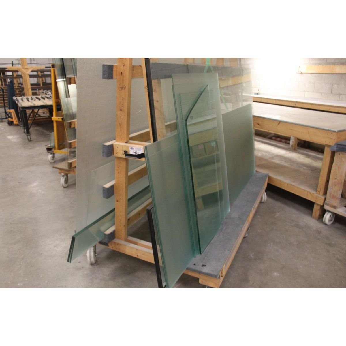 DOUBLE SIDED GLASS CART WITH FLOOR CLAMPS