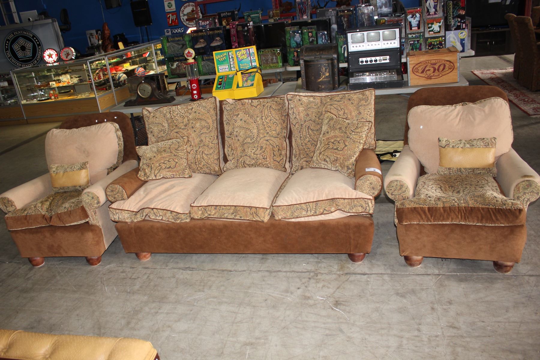 DOWN-FILLED 3 PIECE SOFA SET INCLUDING PAIR OF ARMCHAIRS