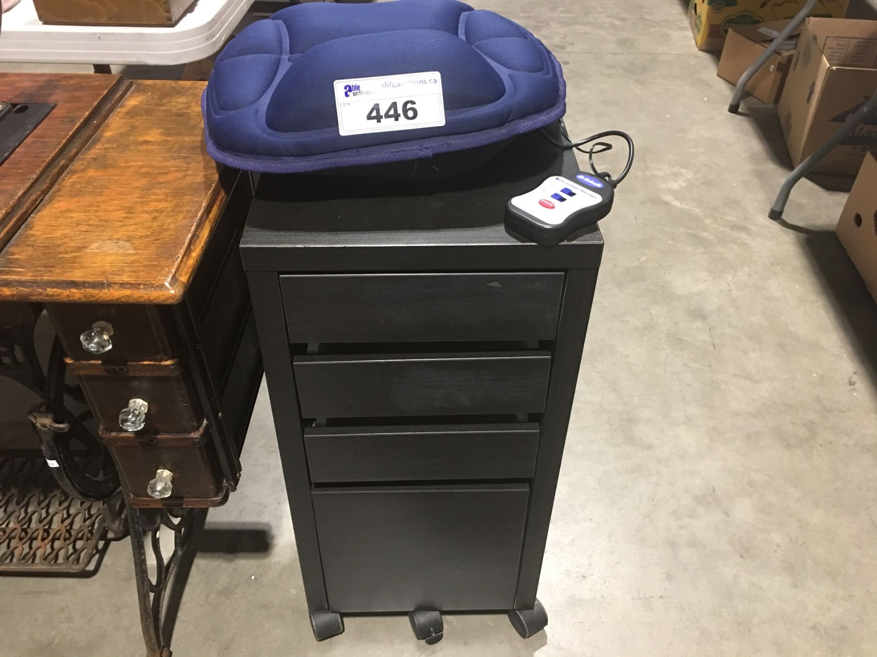 DR. SCHOLL'S BACK CUSHION MASSAGER WITH HEAT & 4-DRAWER CABINET ON CASTORS