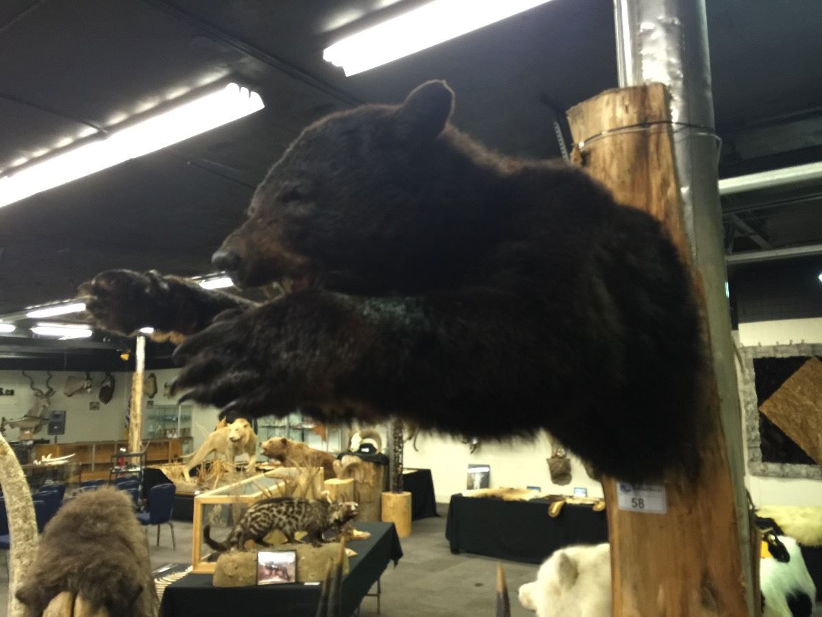DRAMATIC HEAD AND FRONT LEG BLACK BEAR (URSUS AMERICANUS) WALL MOUNT, 37'' DEEP OFF WALL