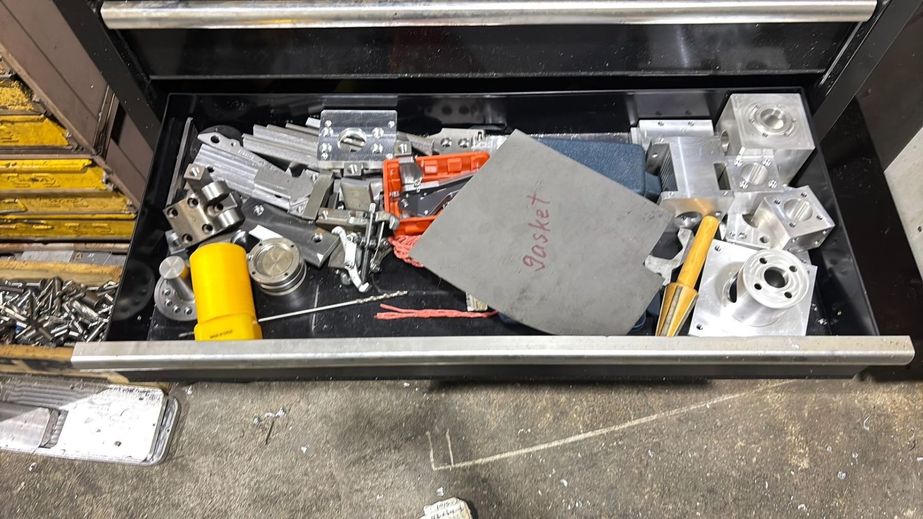 DRAWER OF ASSORTED COMMERCIAL INDUSTRIAL CNC MACHINE CUTTING TEETH / TOOLING