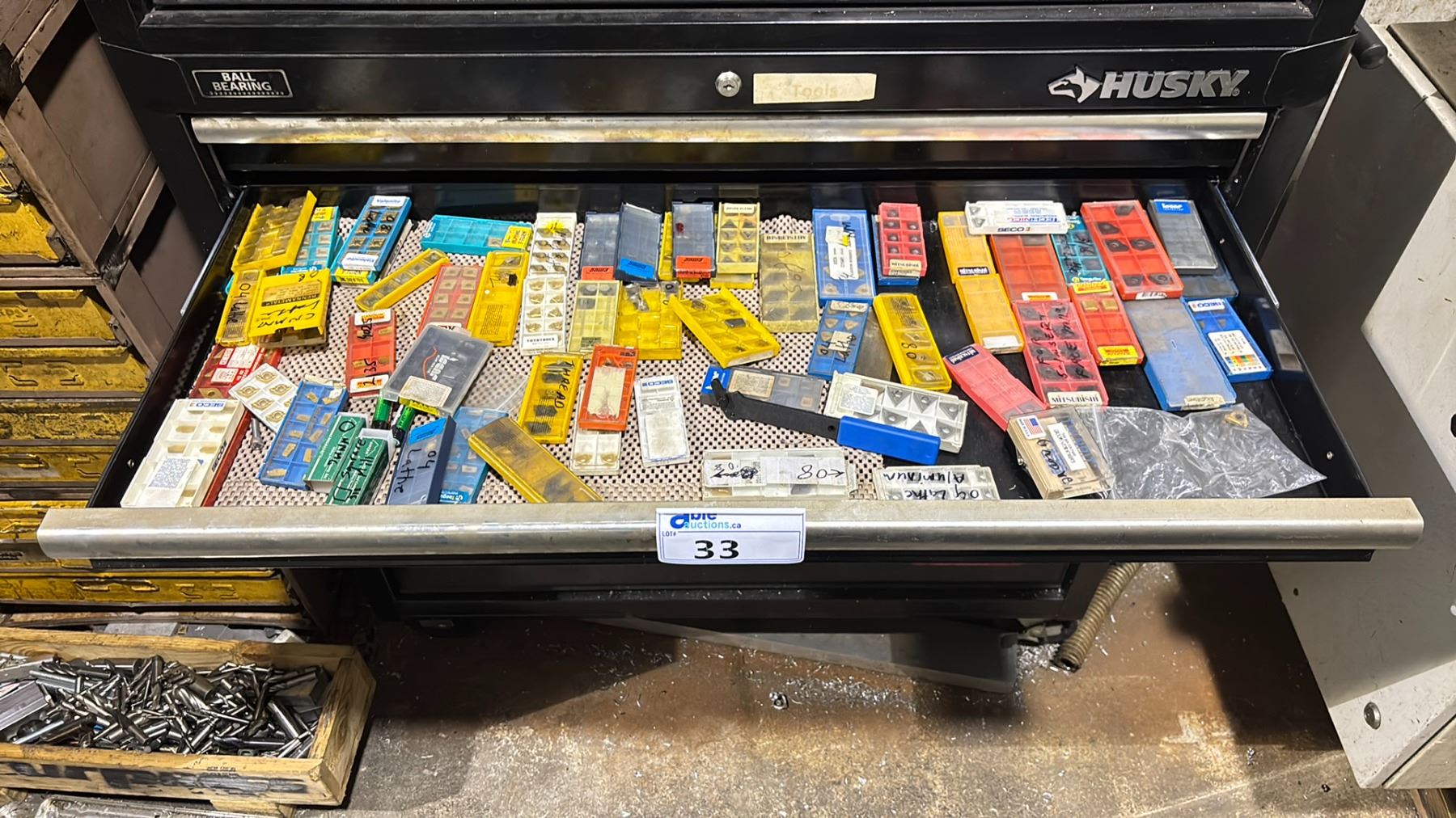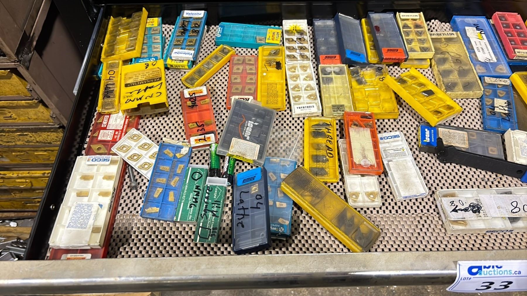 DRAWER OF ASSORTED COMMERCIAL INDUSTRIAL CNC MACHINE CUTTING TEETH / TOOLING *CONTENTS ONLY, TOOL BOX NOT INCLUDED*