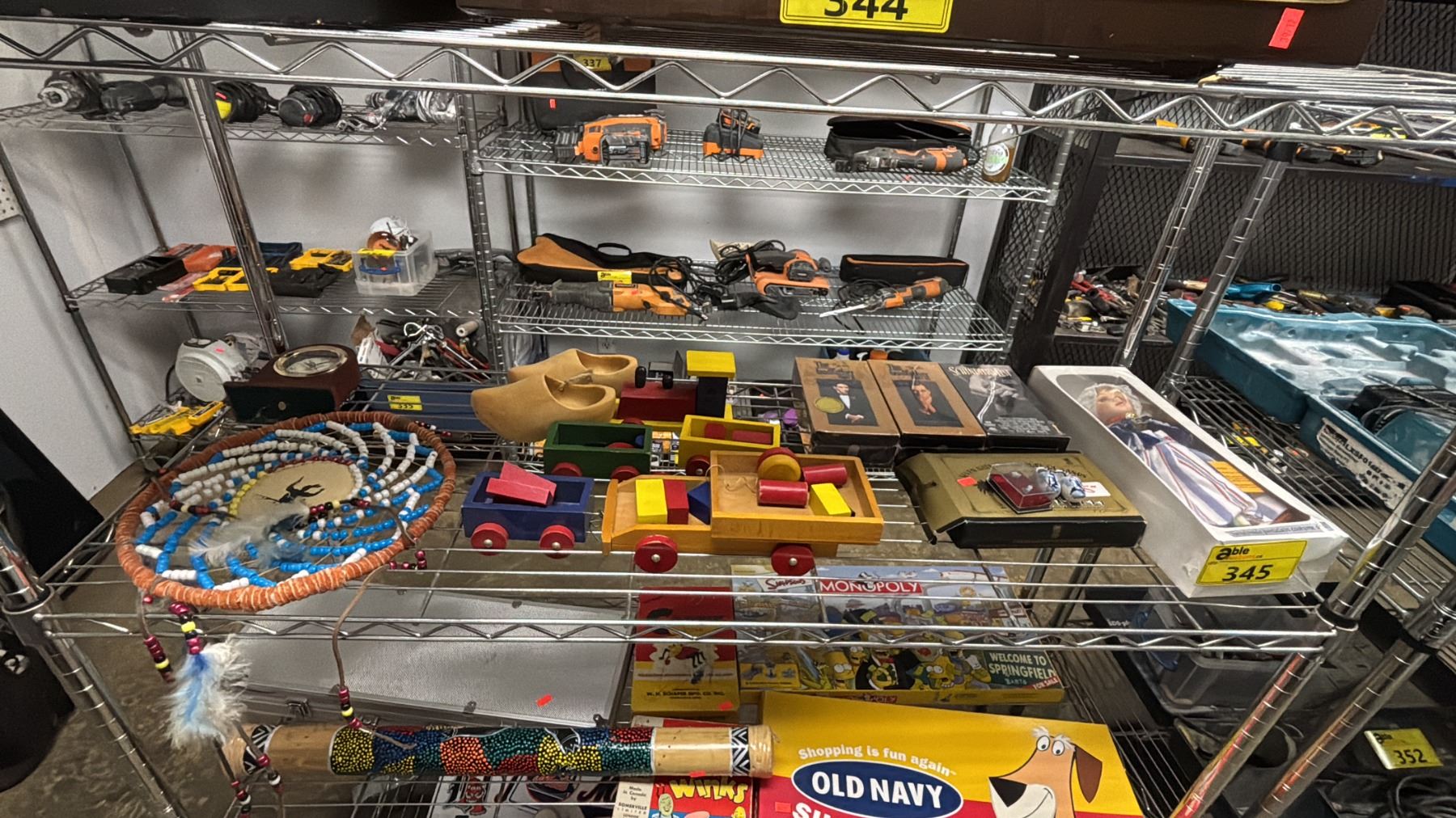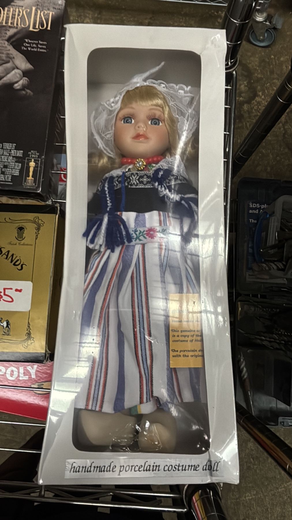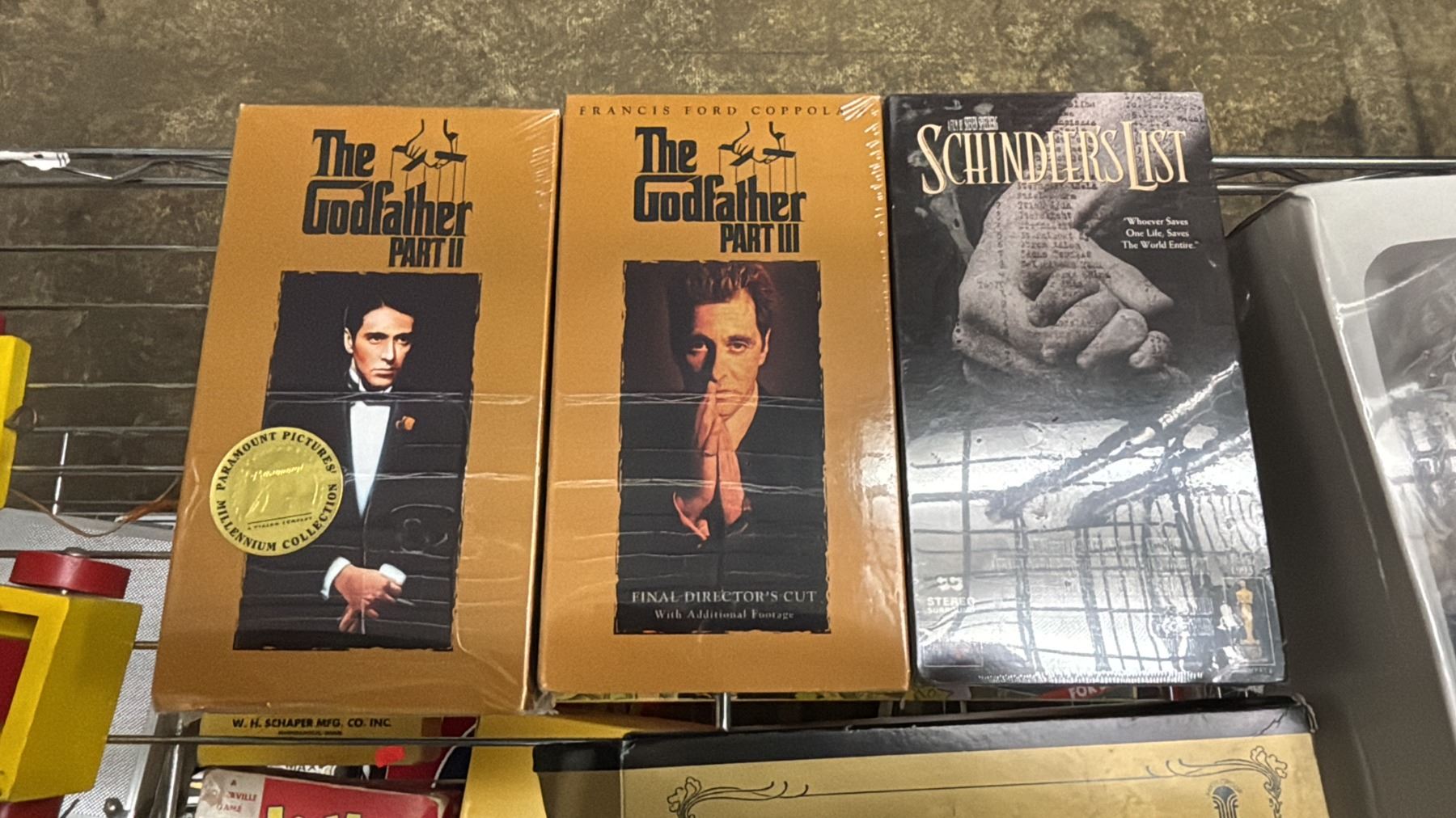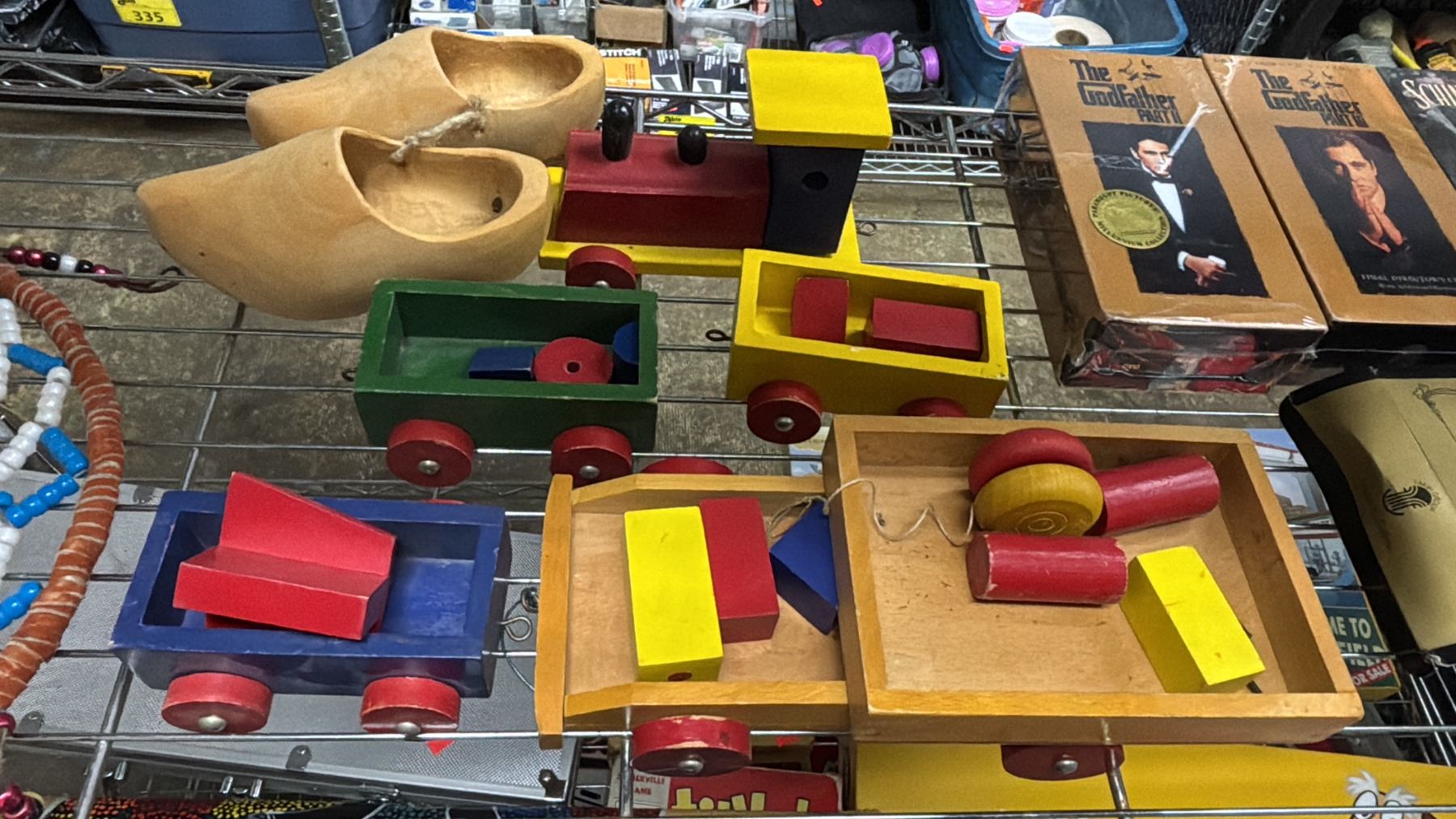 DREAMCATCHER, WOODEN TRAIN, VHS CASSETTES, PORCELAIN DOLL, CLOCK & MORE