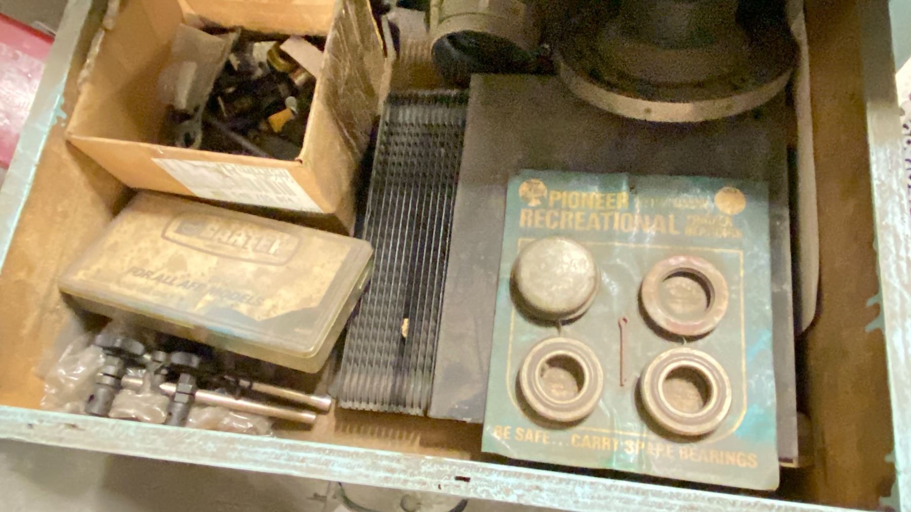 DRESSER WITH ASST PARTS AND PIECES. PULLEY, BEARING KIT, ASST CONTENTS