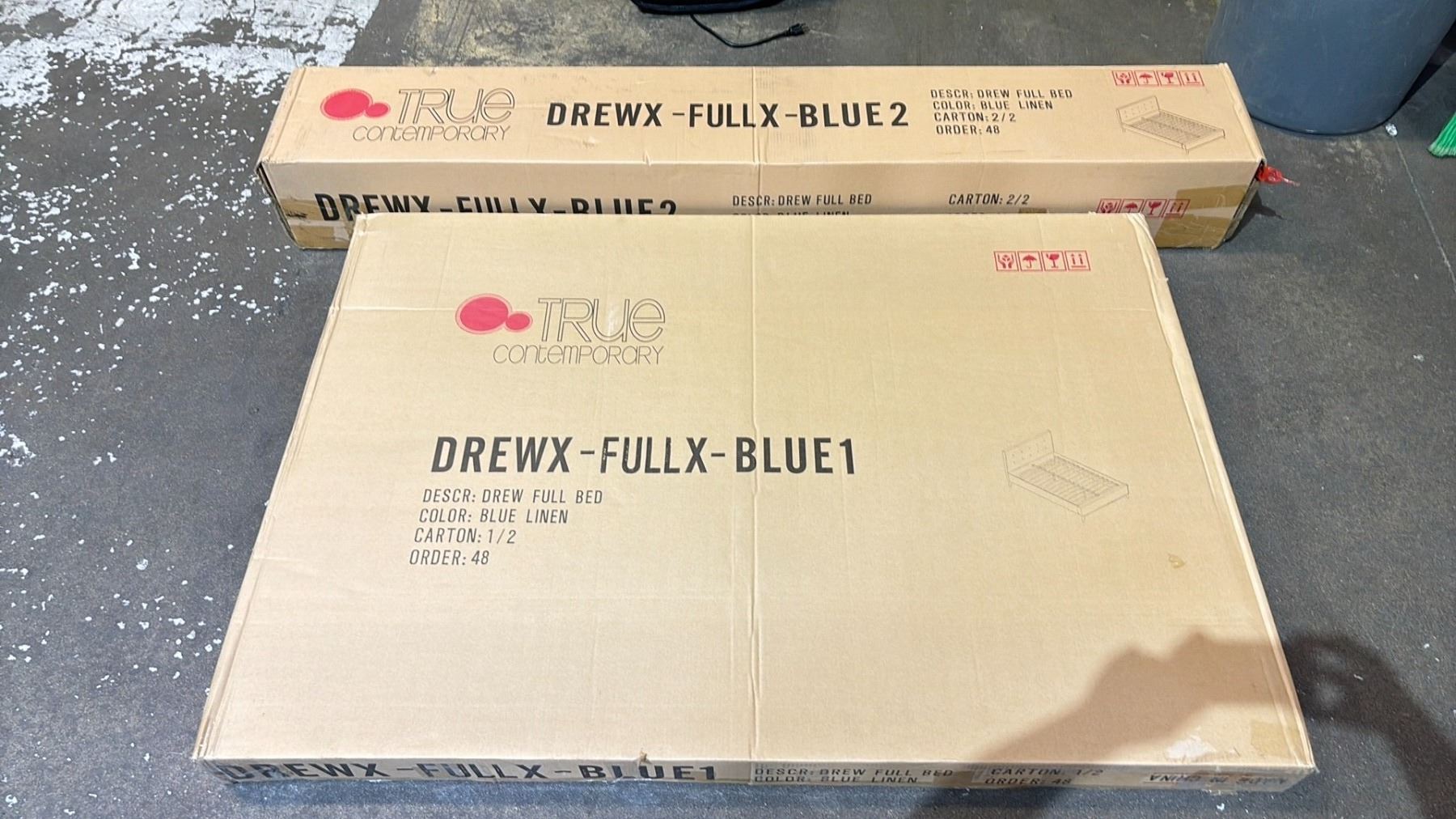 DREW FULL SIZE BLUE LINEN BED FRAME *NEW IN BOX* (2 BOXES)