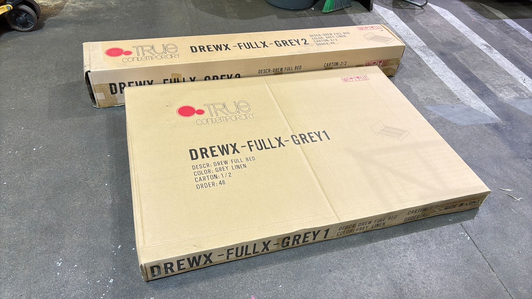 DREW FULL SIZE GREY LINEN BED FRAME *NEW IN BOX* (2 BOXES)