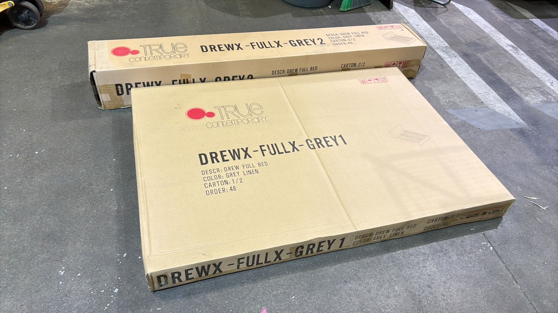 DREW FULL SIZE GREY LINEN BED FRAME *NEW IN BOX* (2 BOXES)